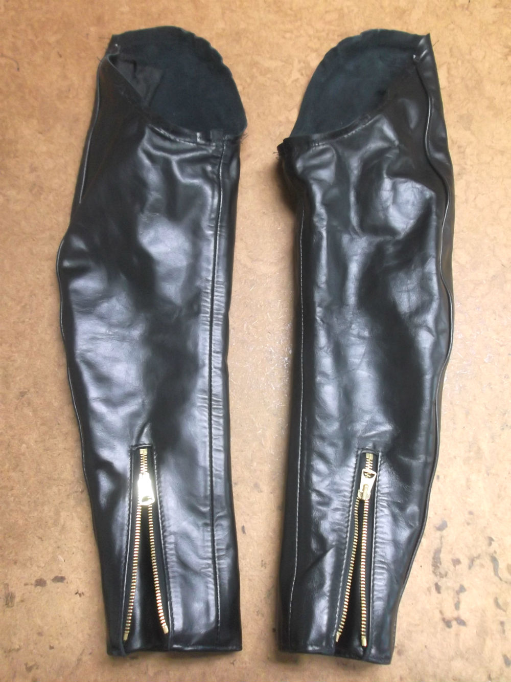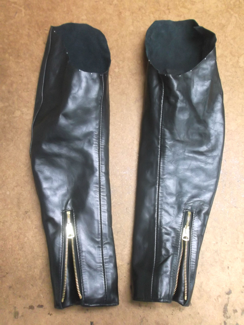8枚目は左右の袖のパーツの袖山からレザーと裏地をカットした後の写真です。