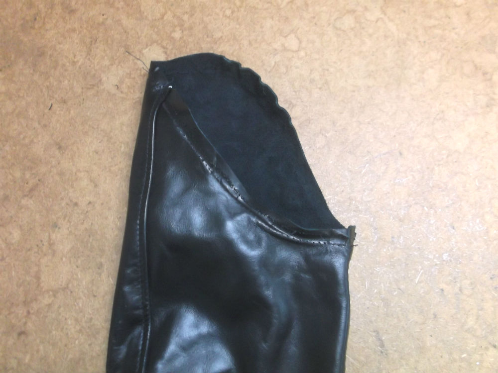 4枚目は袖山から表のレザー部分をカットして袖丈を短くしていきます。
