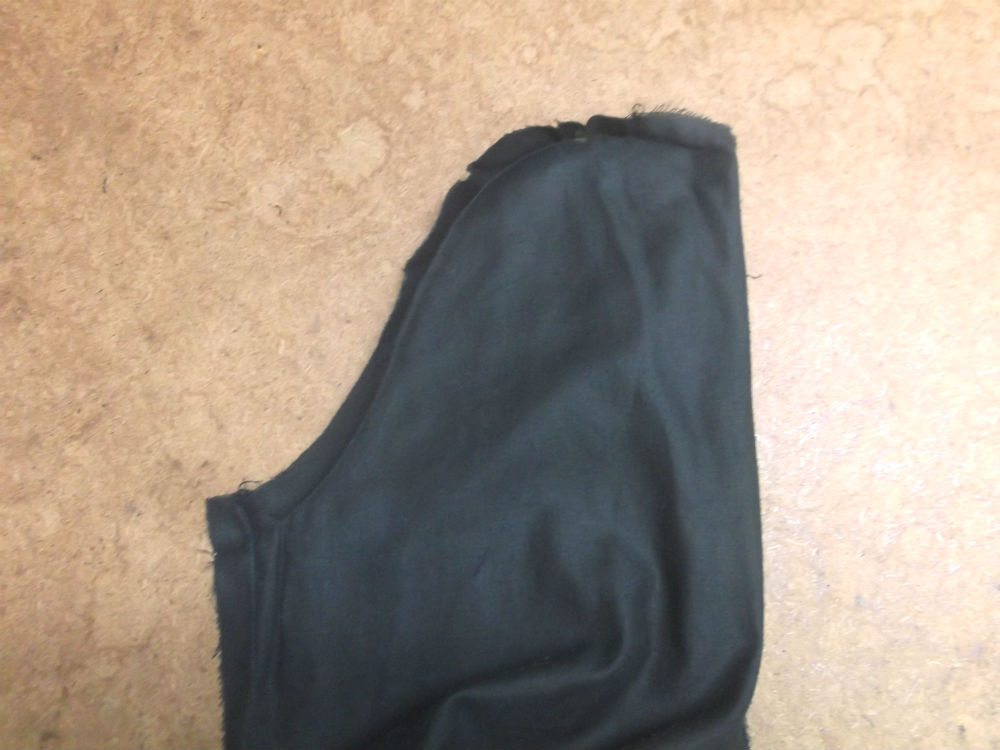 7枚目は裏地の袖山の生地をカットした後の写真です。