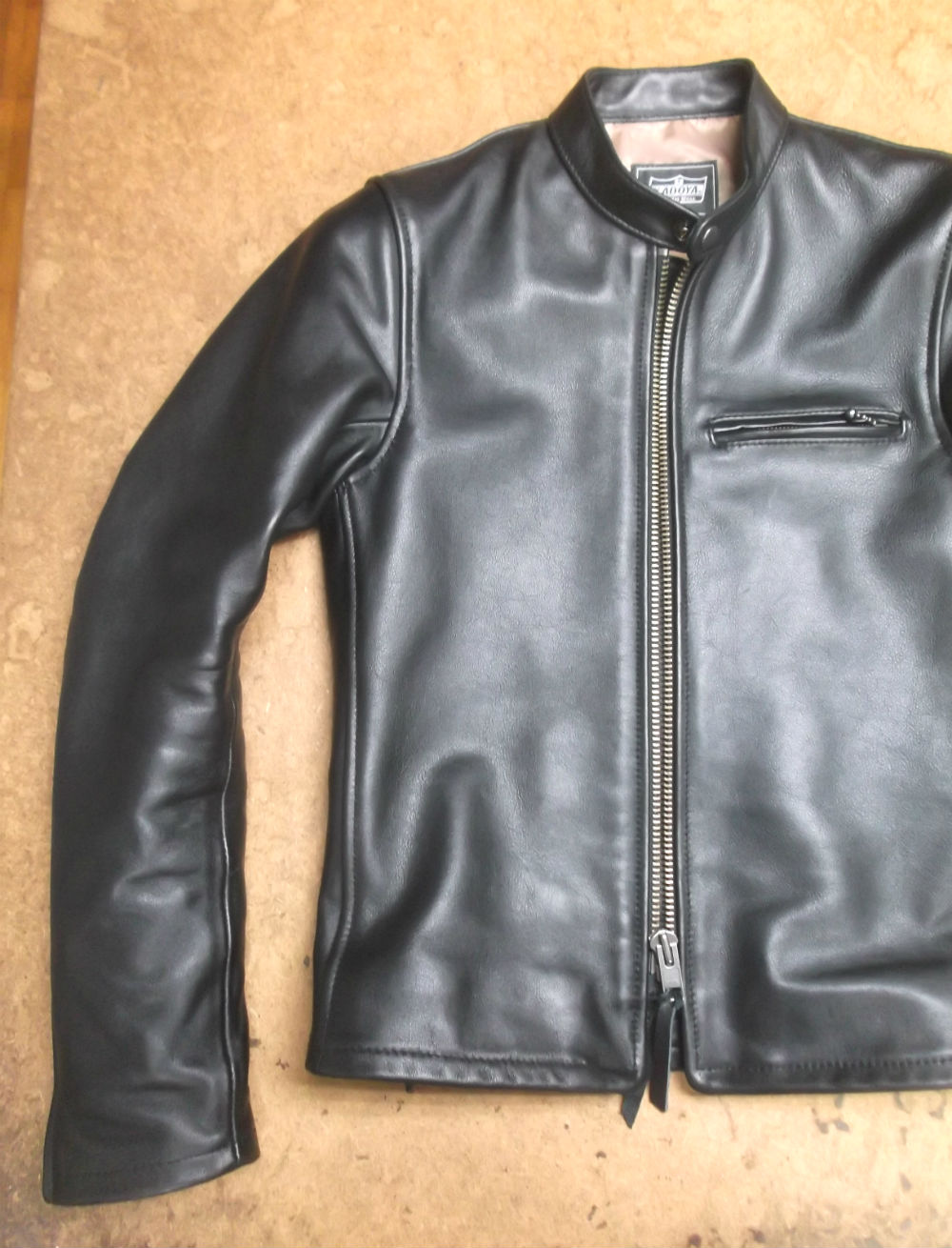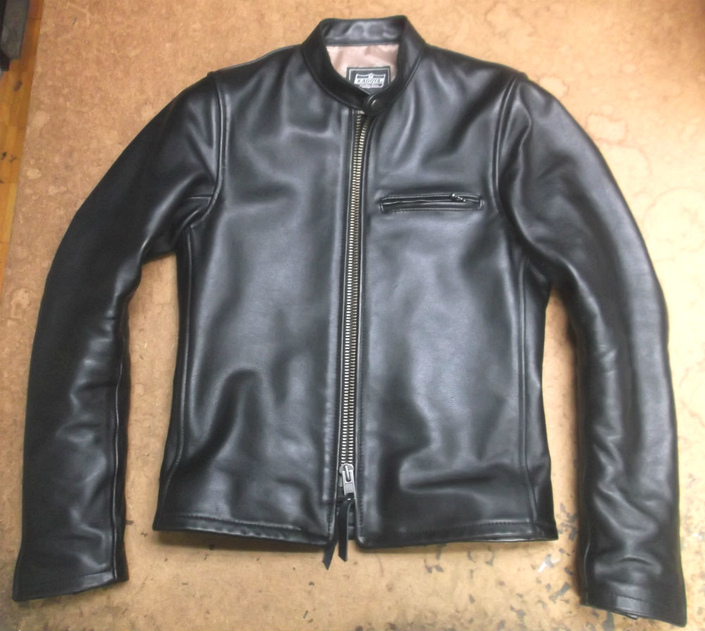 7枚目は8枚目との比較で袖丈を短くしていく前のレザージャケットです。