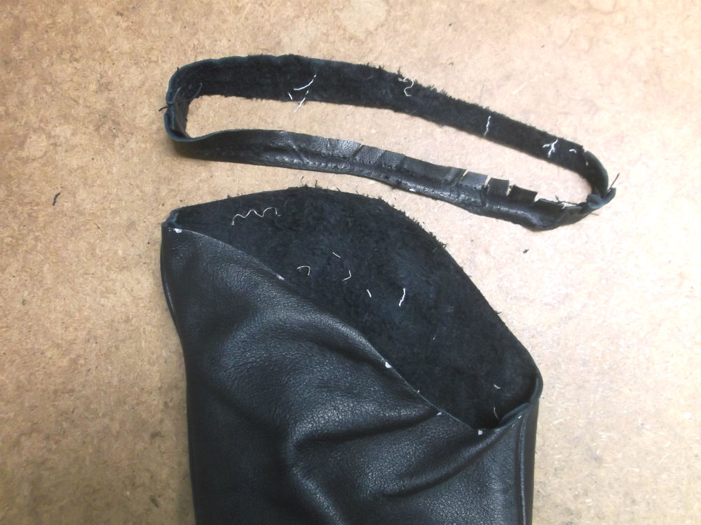 4枚目は袖山からレザーをカットして袖丈を短くした後の写真です。