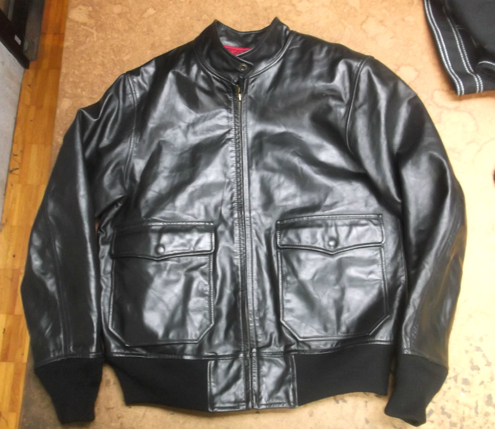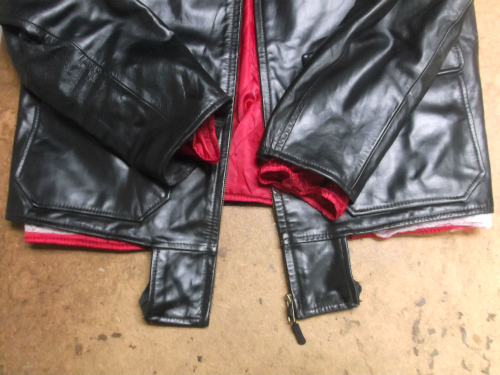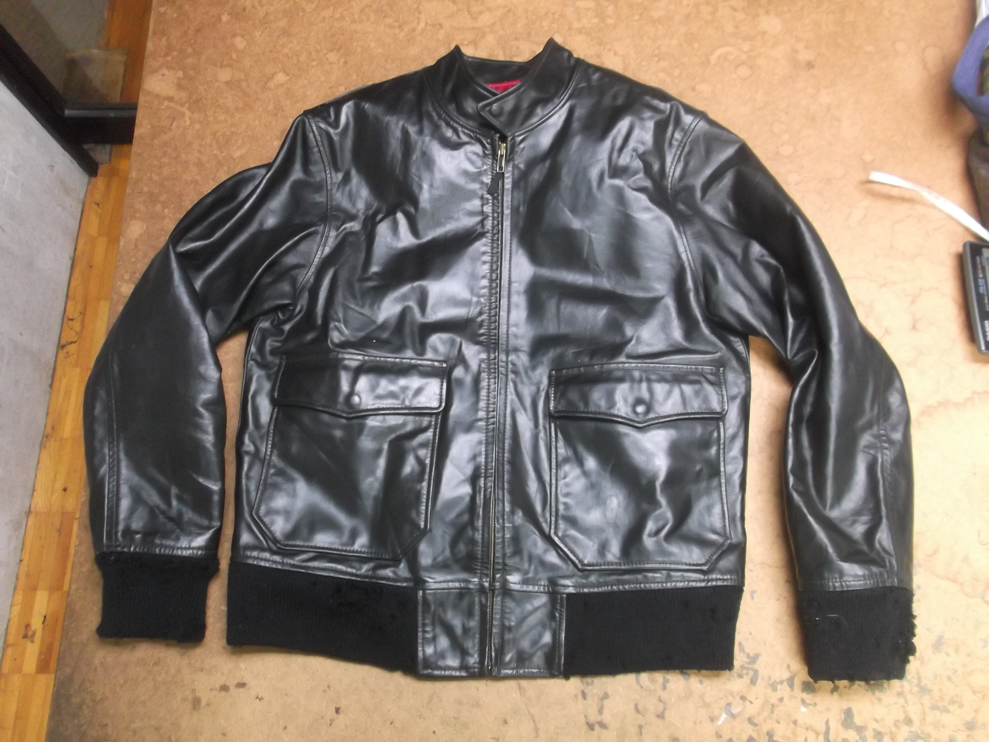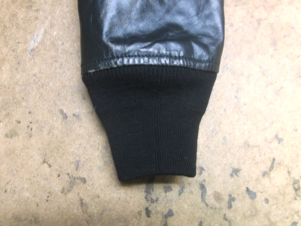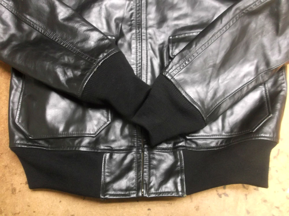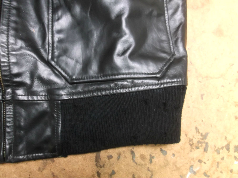 両袖と腰回りのリブニットが所々破れだしたレザージャケットを新しいものに交換していきます。