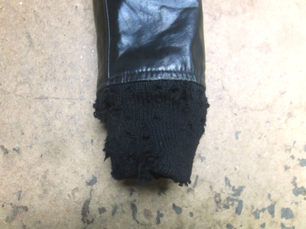 1枚目は兵庫県からの郵送のお客さんの破れだした袖と腰回りのリブニットを交換していく前のレザージャケットの写真です。
