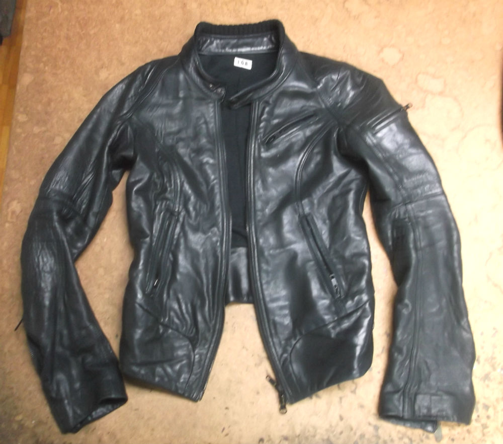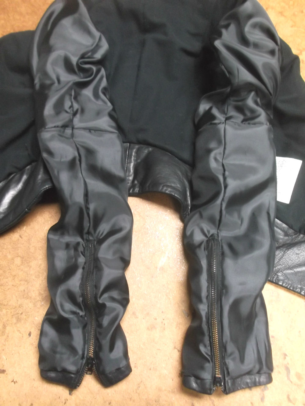 1枚目は来店されたお客さん左右の袖のパーツの裏地を交換していく前のレザージャケットです。