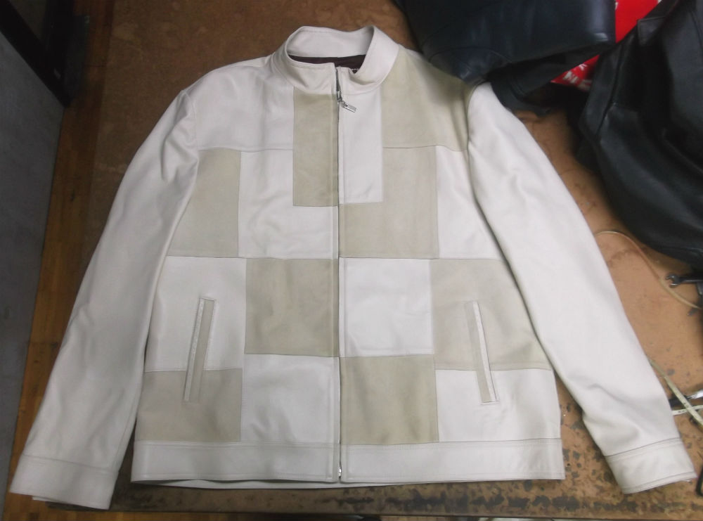 1枚目は来店されたお客さんのサイズを小さくしていく前のレザージャケットです。