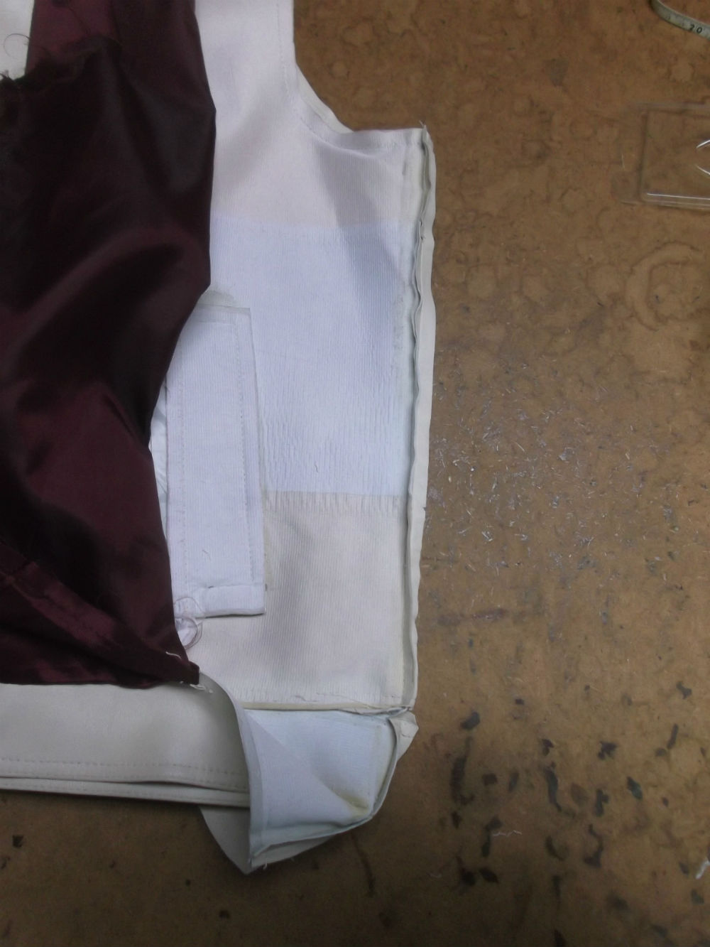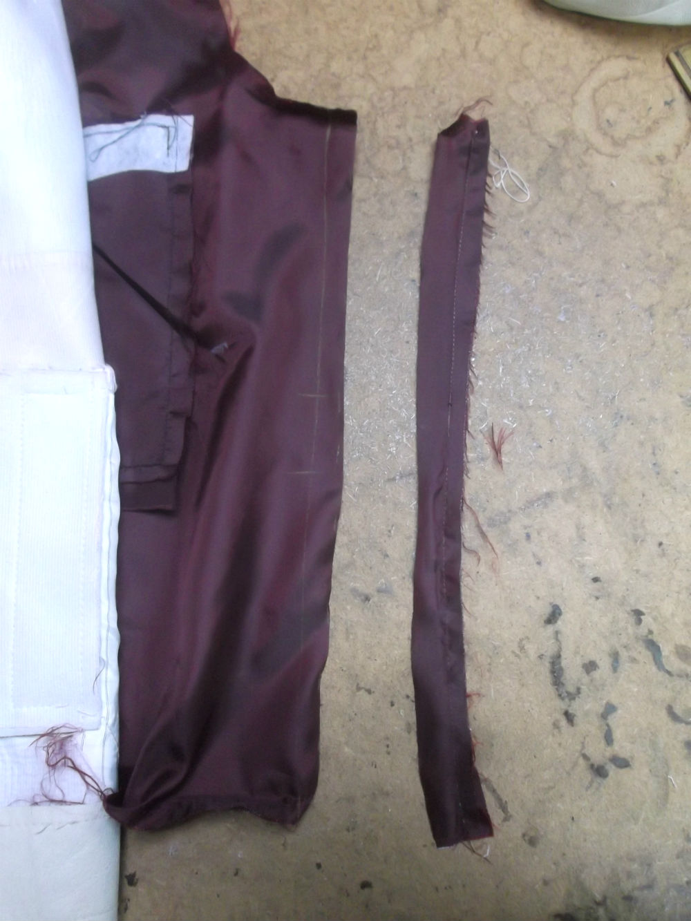 10枚目は脇から裾の裏地の生地をカットした後の写真です。