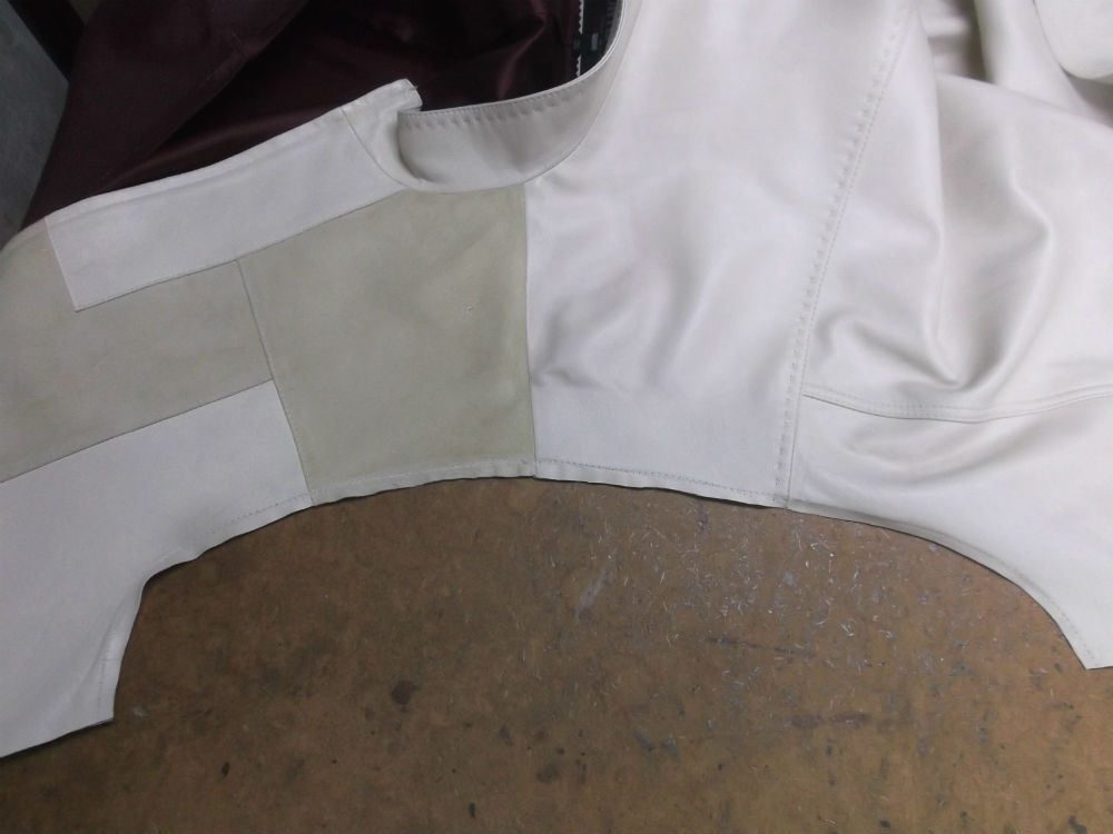 4枚目は脇から裾のサイドのレザーをカットしていく前の写真です。
