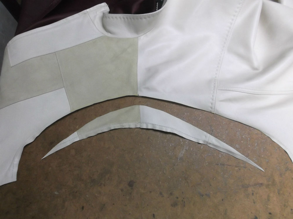 11枚目は肩幅のレザーをカットしていきます。