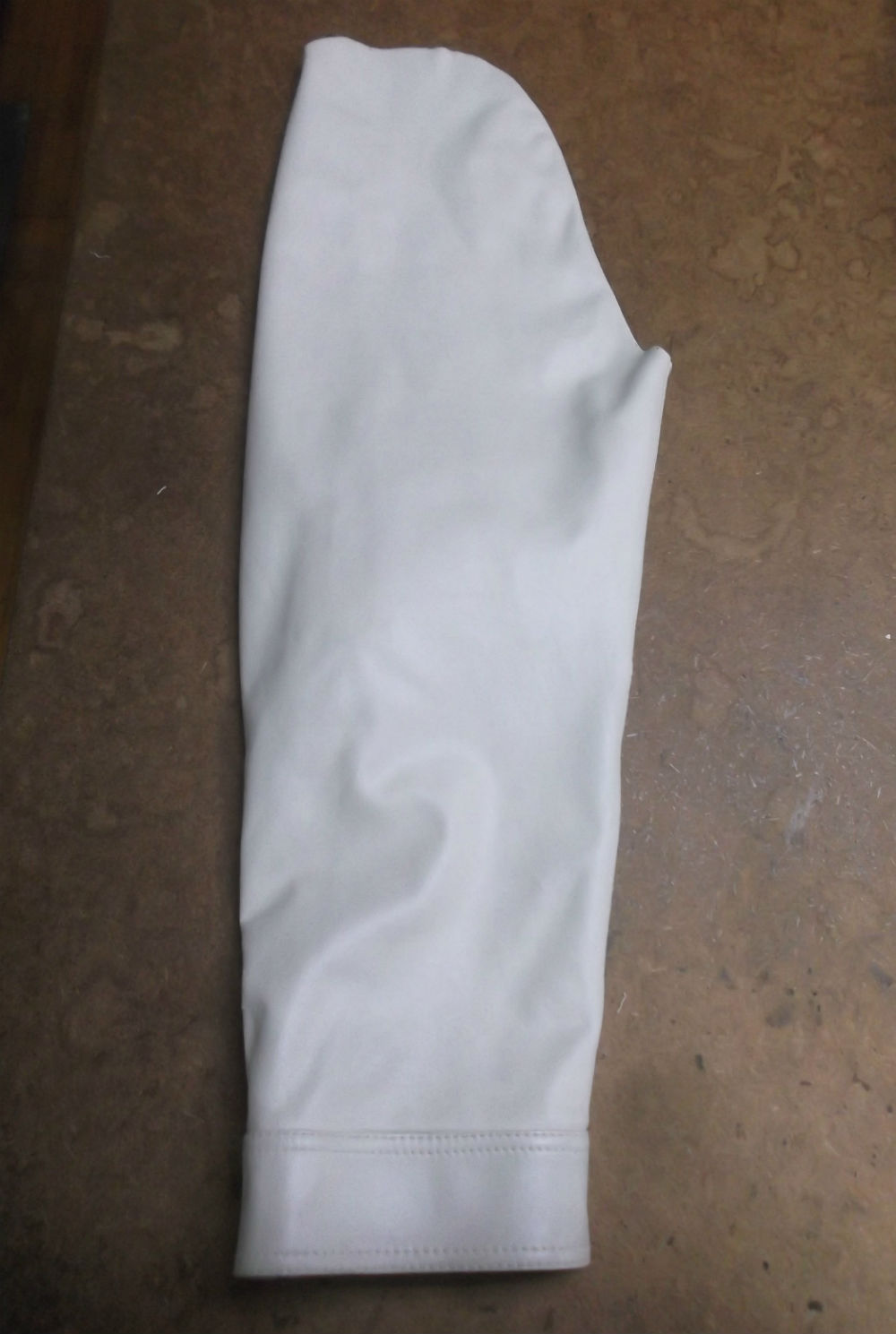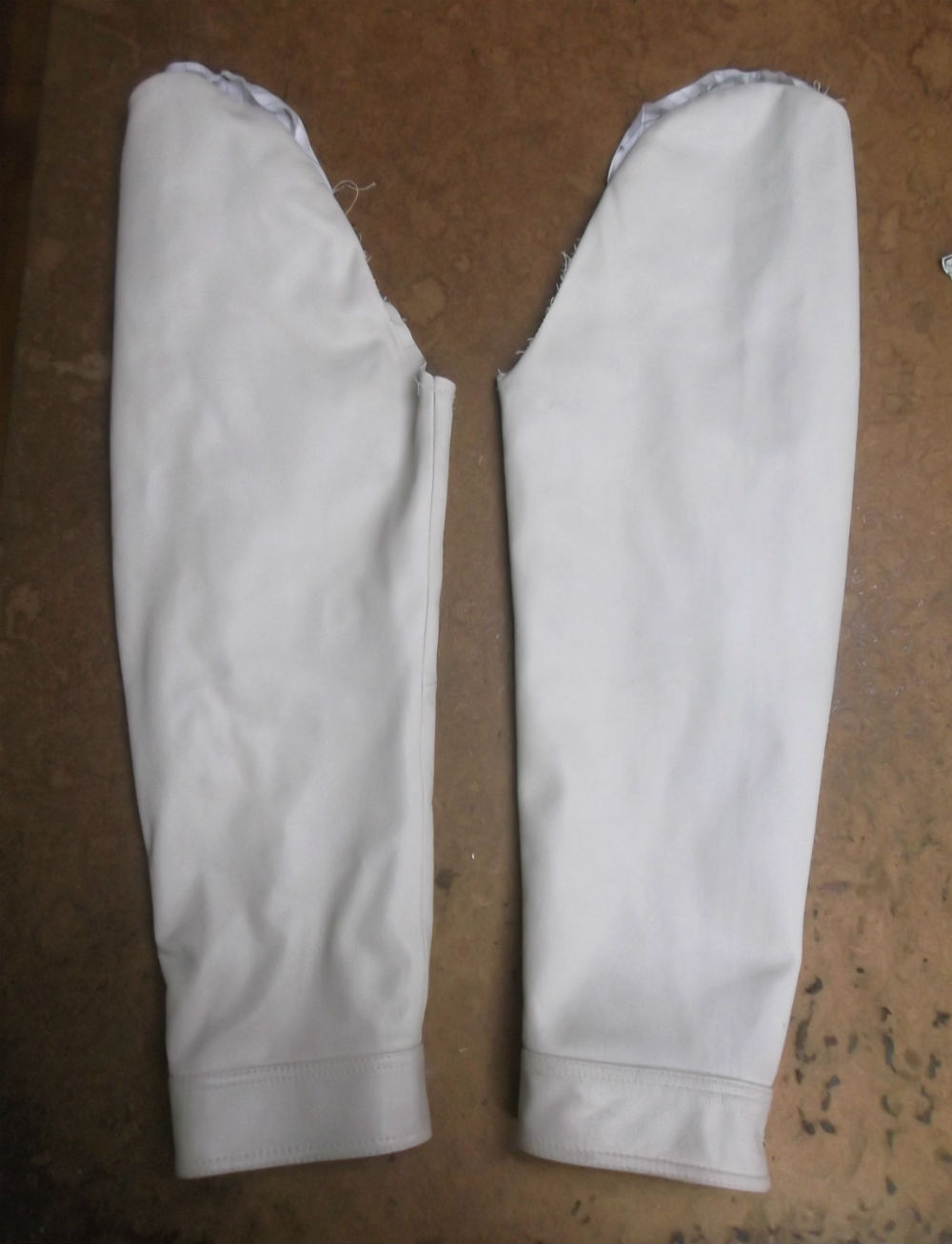 20枚目は裏地の袖山も表のレザー部分と同じ長さの生地をカットしていきます。