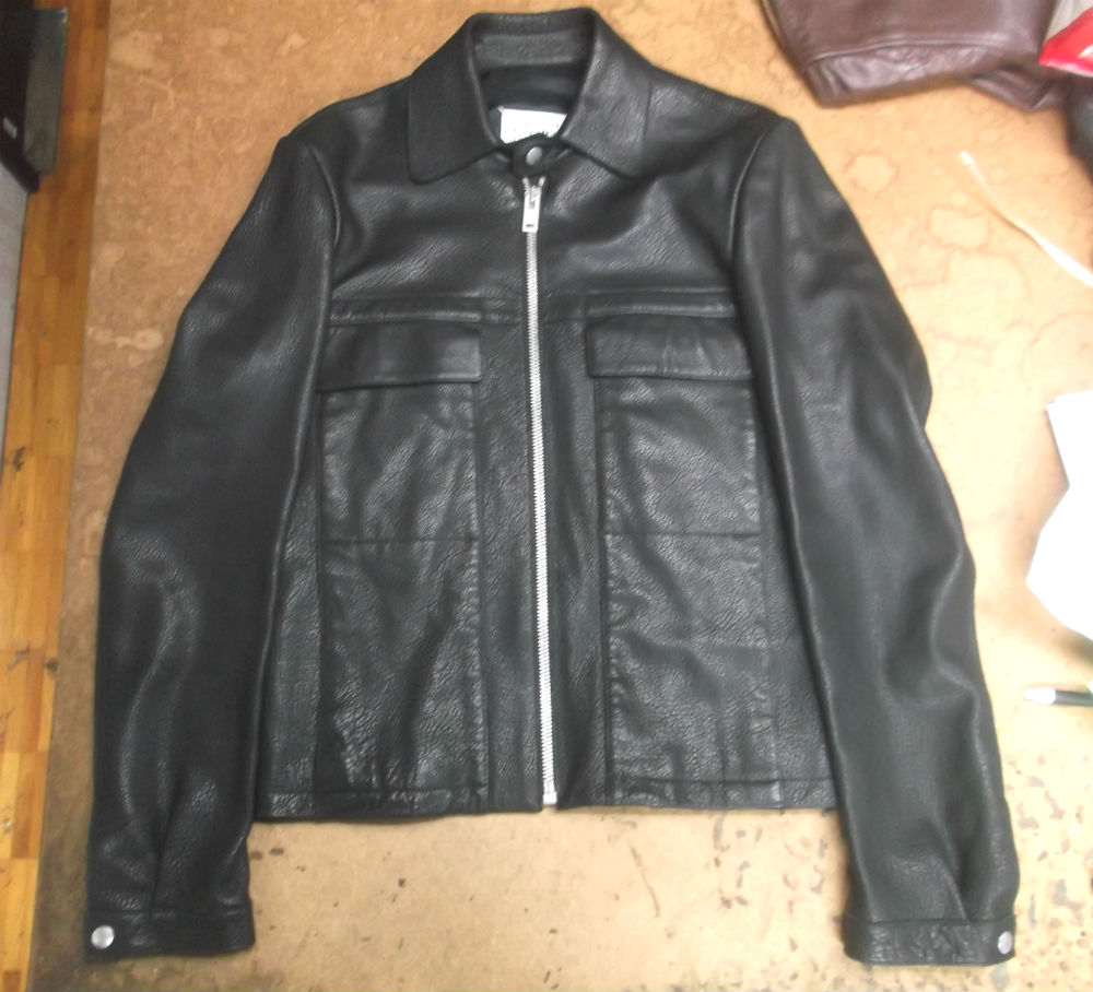 1枚目は北海道からの郵送のお客さんの袖丈を短くしていく前のレザージャケットです。