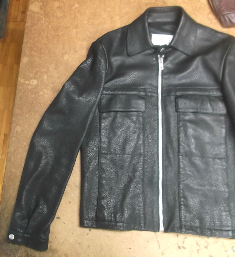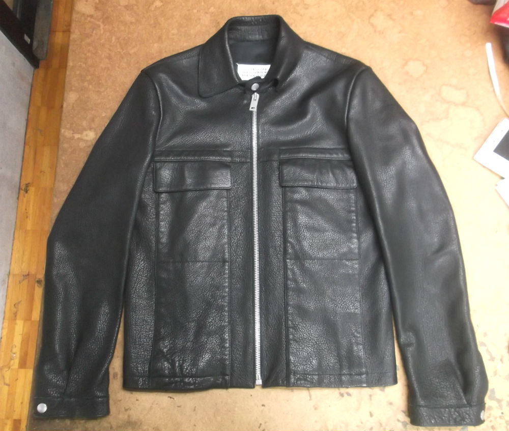 マルジェラの袖丈の長いレザージャケットをお客さんの好みの長さに短くリサイズ 革ジャン袖丈詰め直し