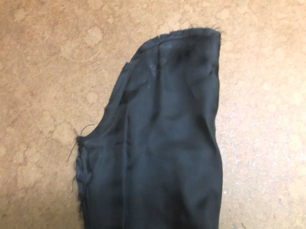 7枚目は裏地の袖山の生地をカットした後の写真です。