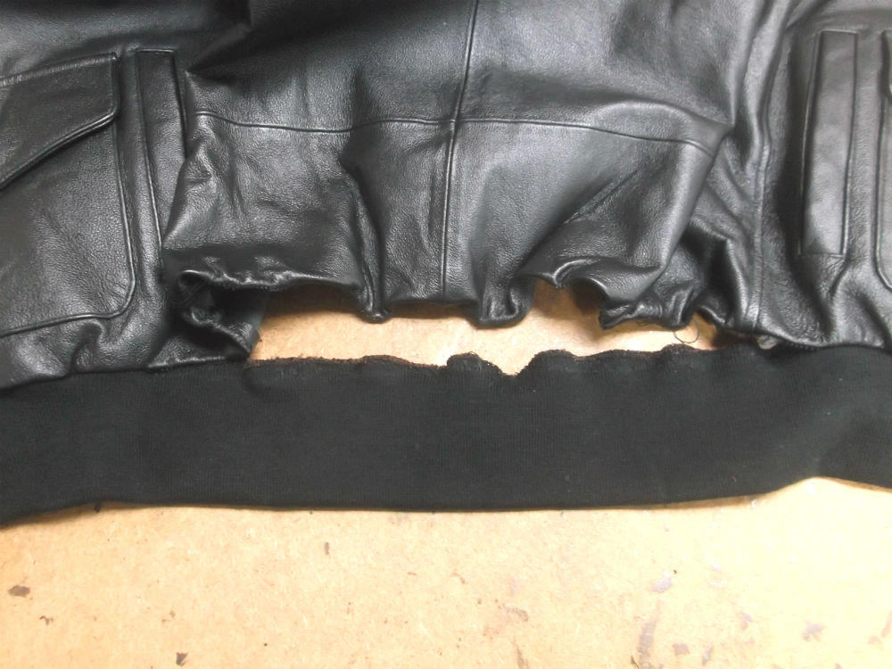 MA-1の襟、両袖、腰回りのリブニットを交換