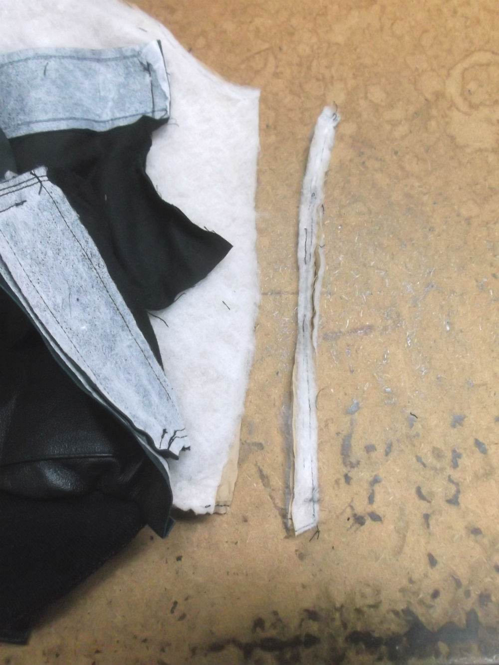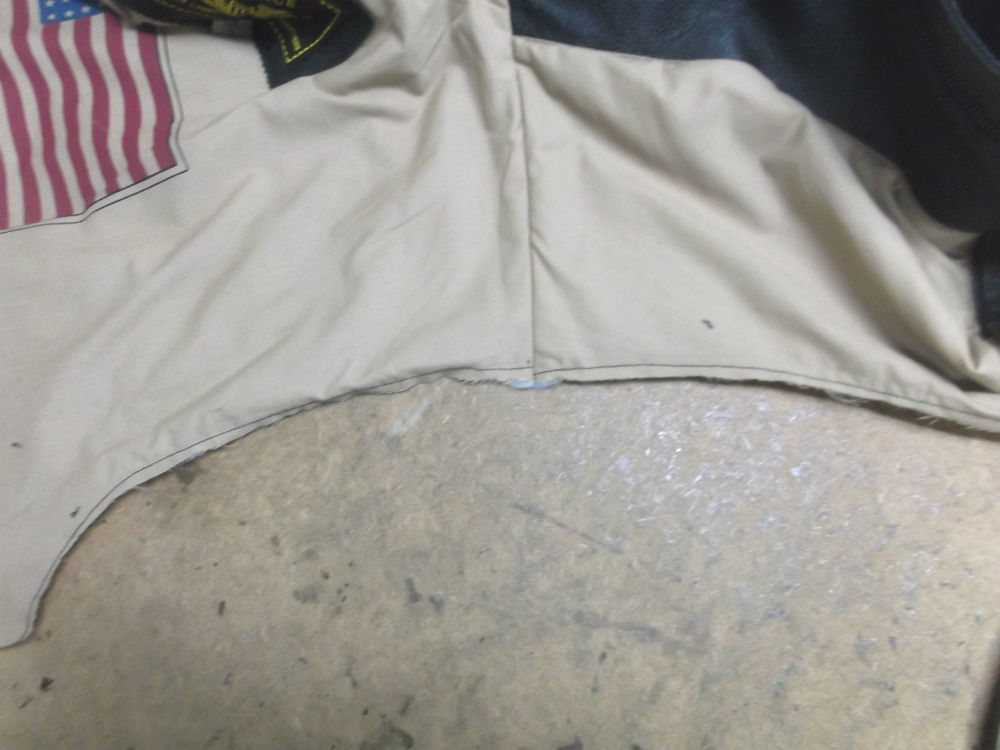 19枚目は脇から袖先にかけてレザーをカットした後の写真です。