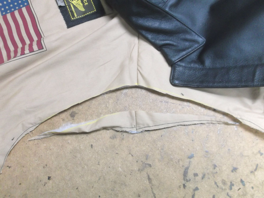 A-2フライトジャケットのリブニットとジッパーを新しいものに交換してい…