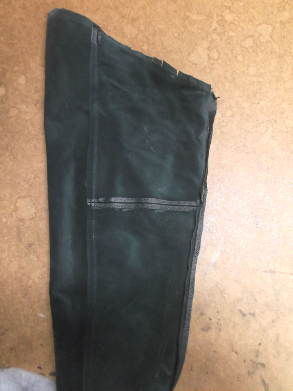 7枚目は表のレザー部分の裾の縫い目をばらした後の写真です。