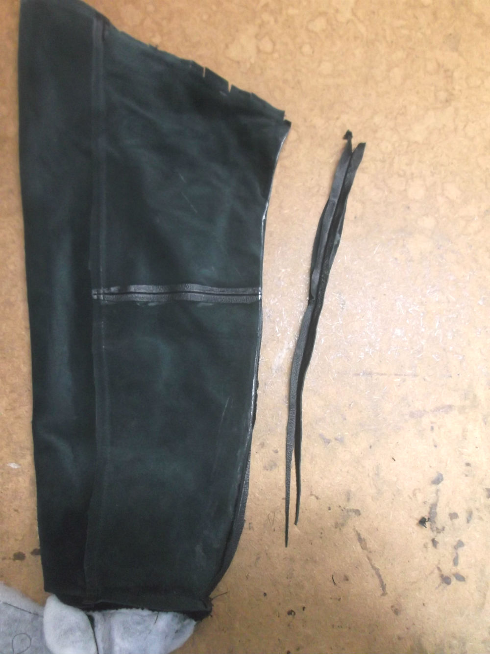 9枚目は脇から裾のサイドのレザーをカットした後の写真です。