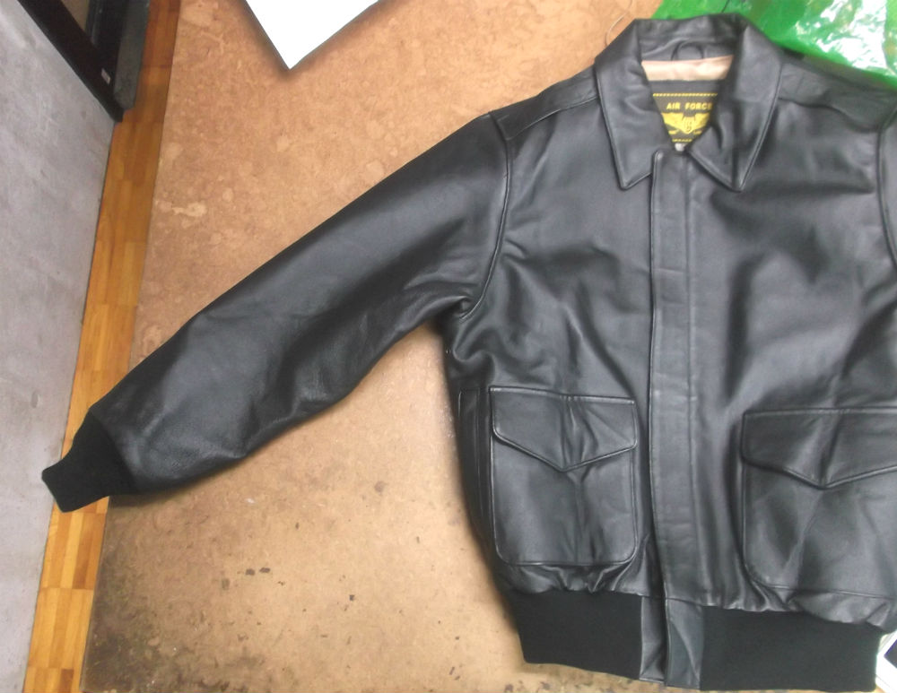 A-2フライトジャケットのジッパーと両袖、腰回りのリブニットを新しいも…