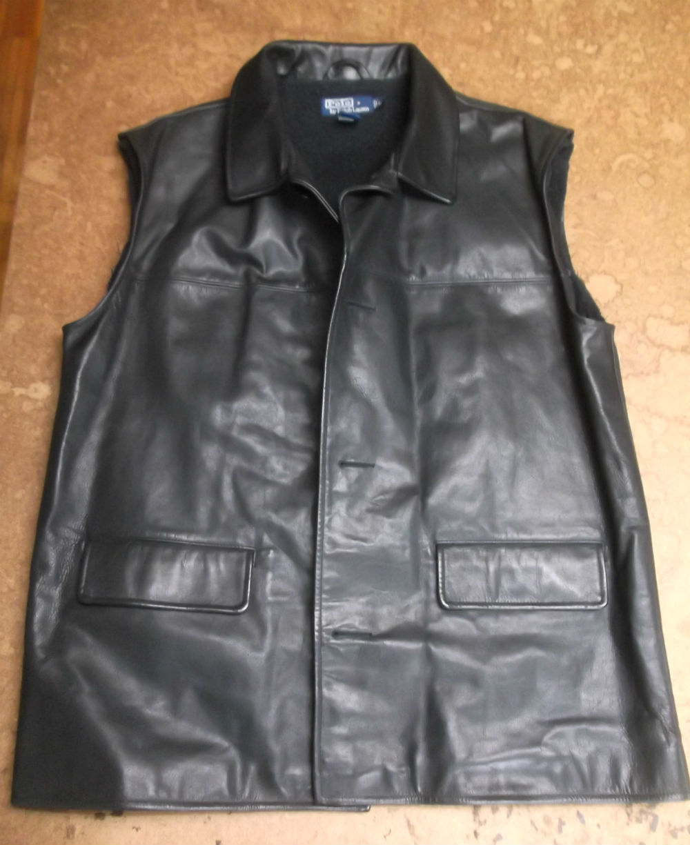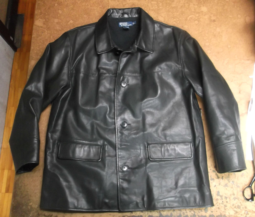 長い袖丈のラルフローレンのレザージャケットをお客さんの好みの長さに短くリサイズ 革ジャン袖丈詰め直し