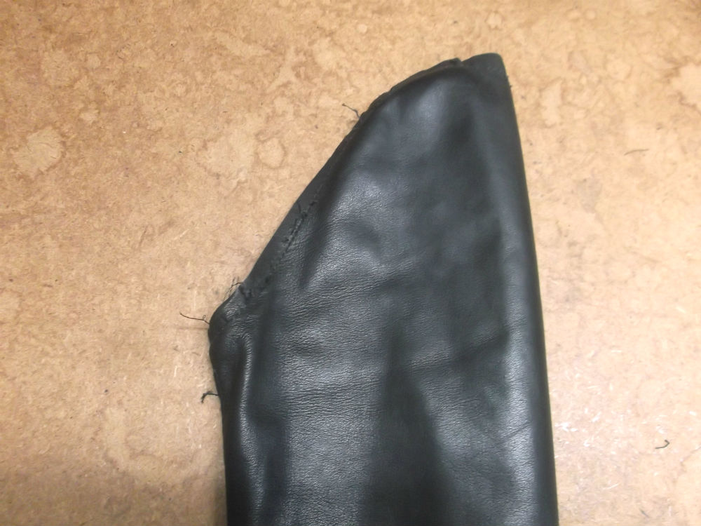 4枚目は袖山からレザーをカットして長い袖丈を短くしていきます。