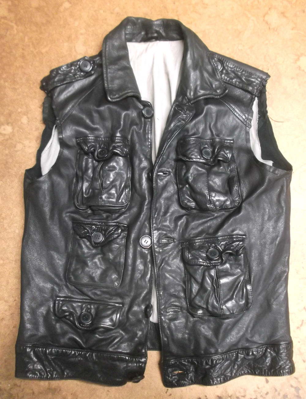 5枚目は袖山からレザーをカットして袖丈を短くした後の写真です。