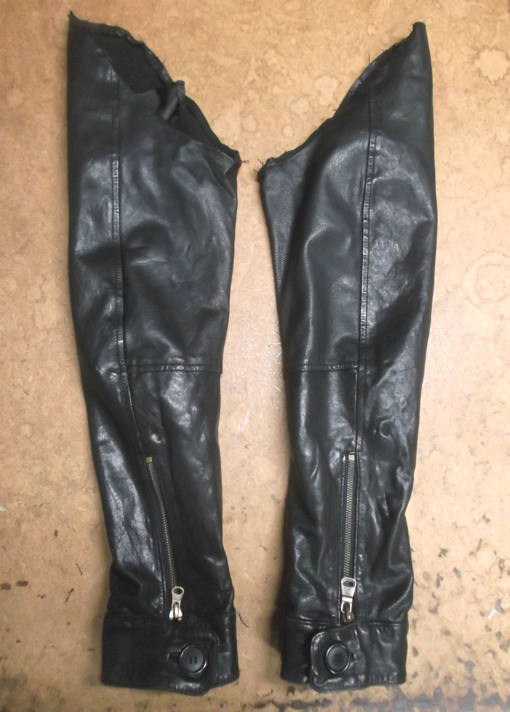 1枚目は大分県からの郵送のお客さんの長い袖丈を短くしていく前のレザージャケットです。