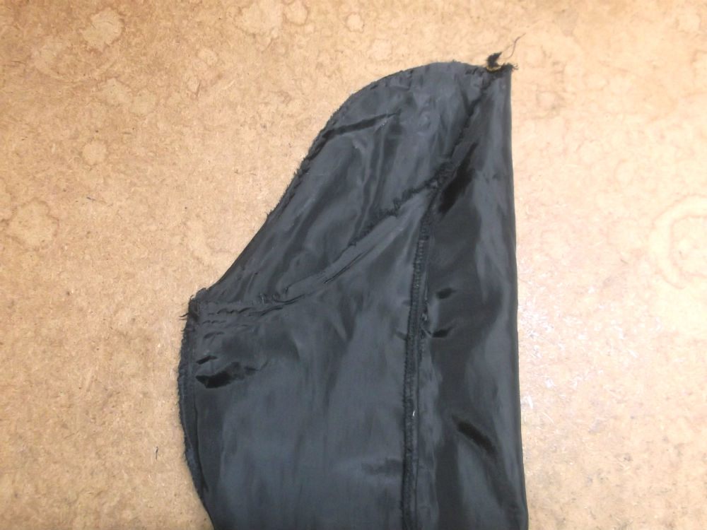 7枚目は裏地の袖山の生地をカットした後の写真です。