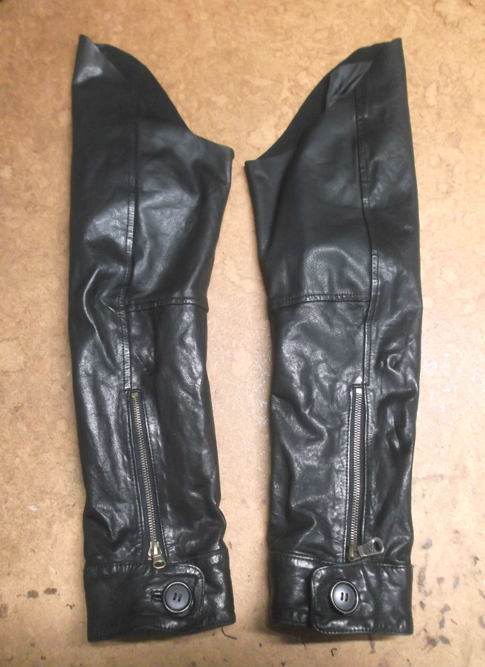 長い袖丈のレザージャケットをお客さんの好みの長さに短くリサイズ 革ジャン袖丈縮め修理