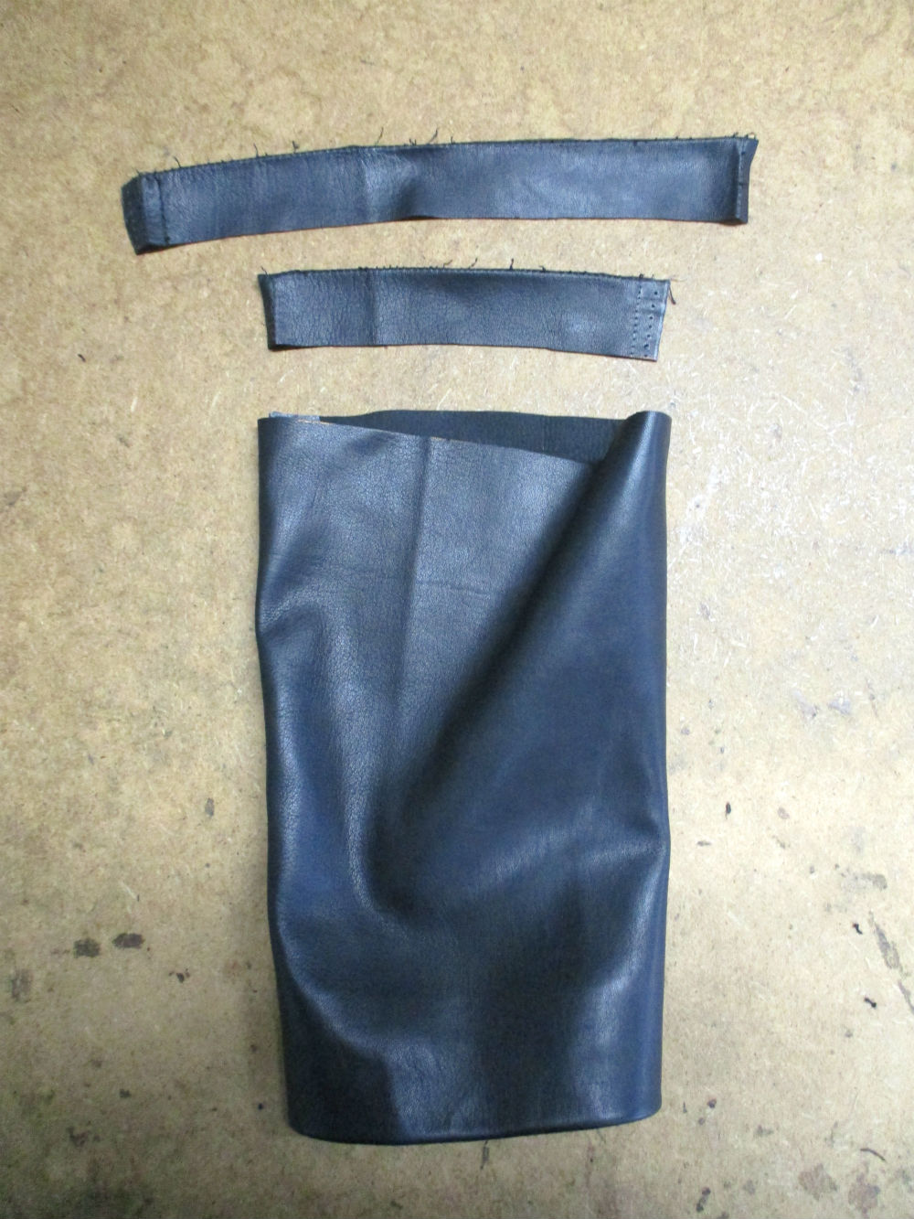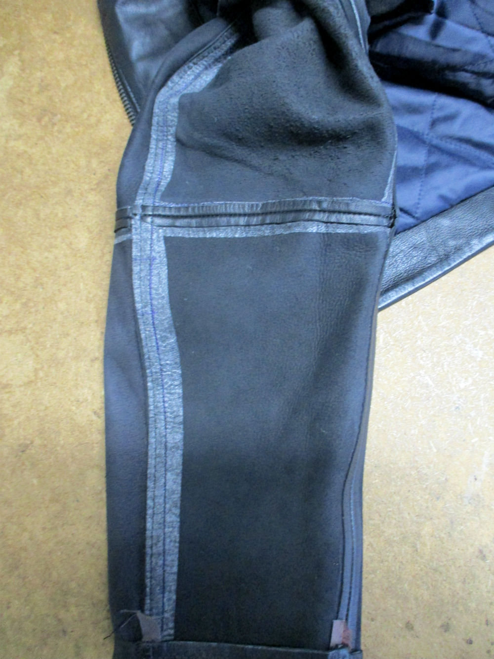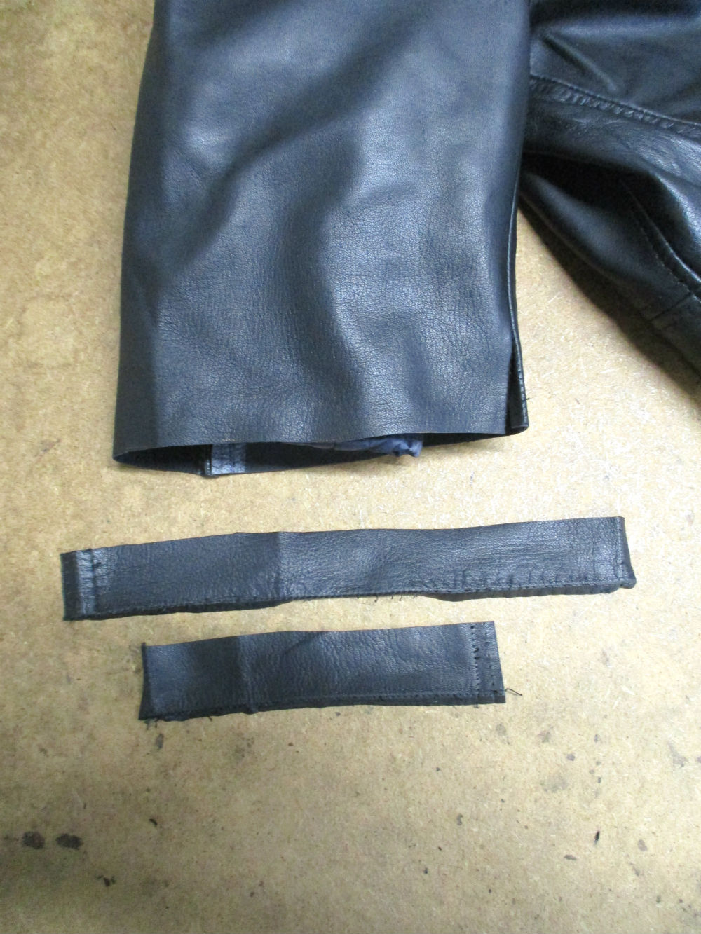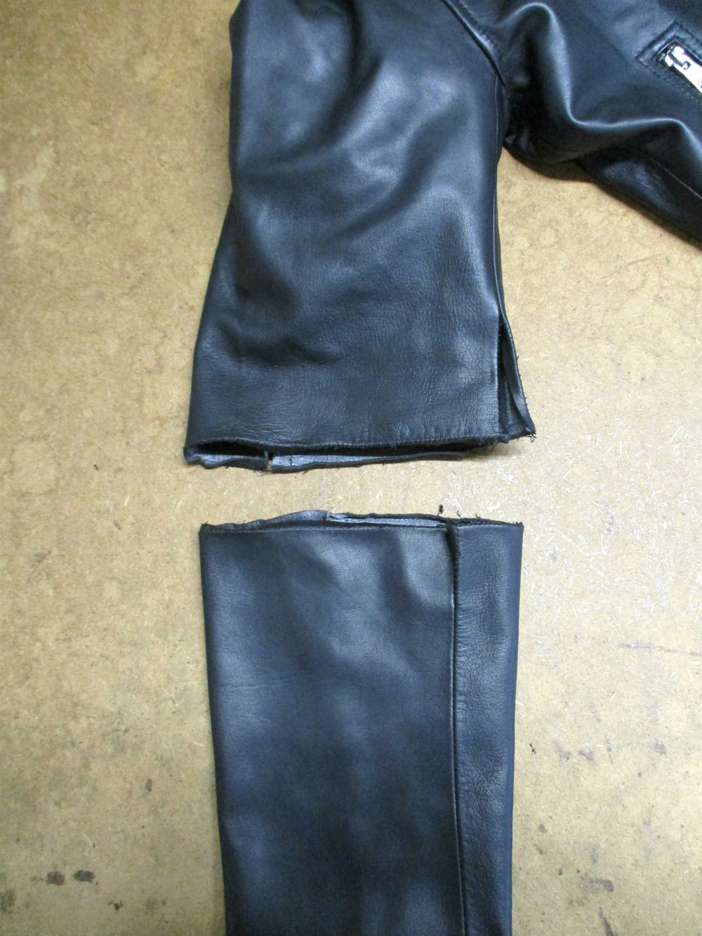 7枚目は袖先側のレザーをカットした後の写真です。