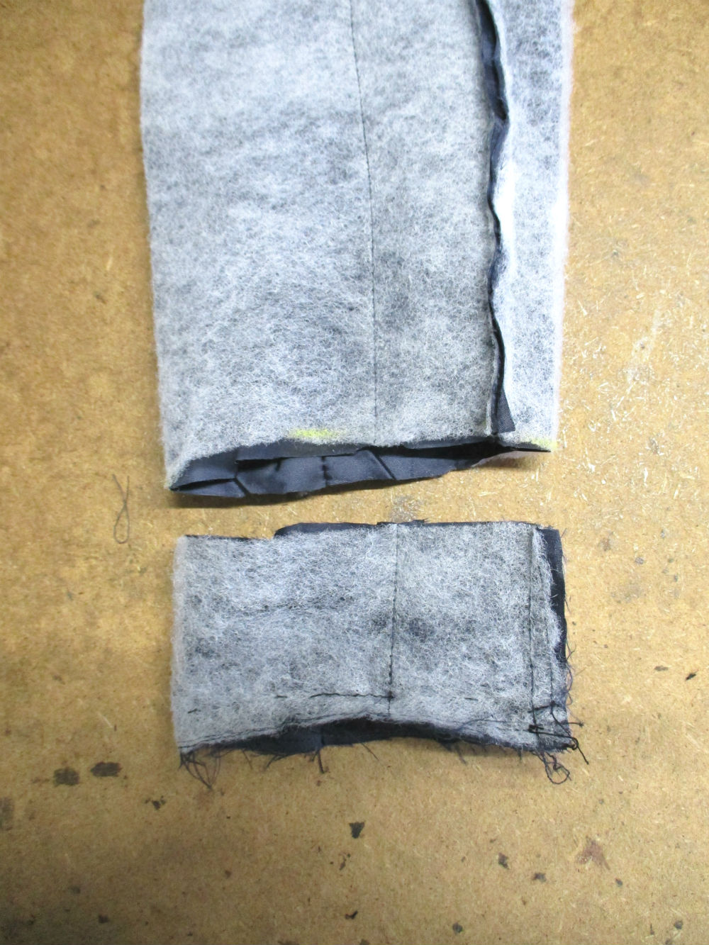 10枚目は裏地の袖先の生地をカットしていく前です。