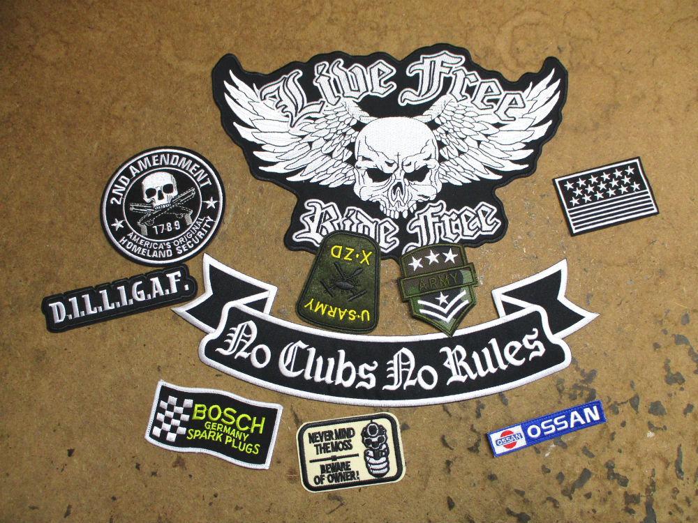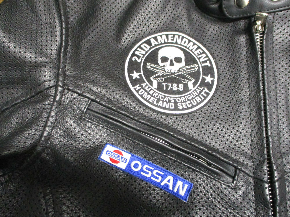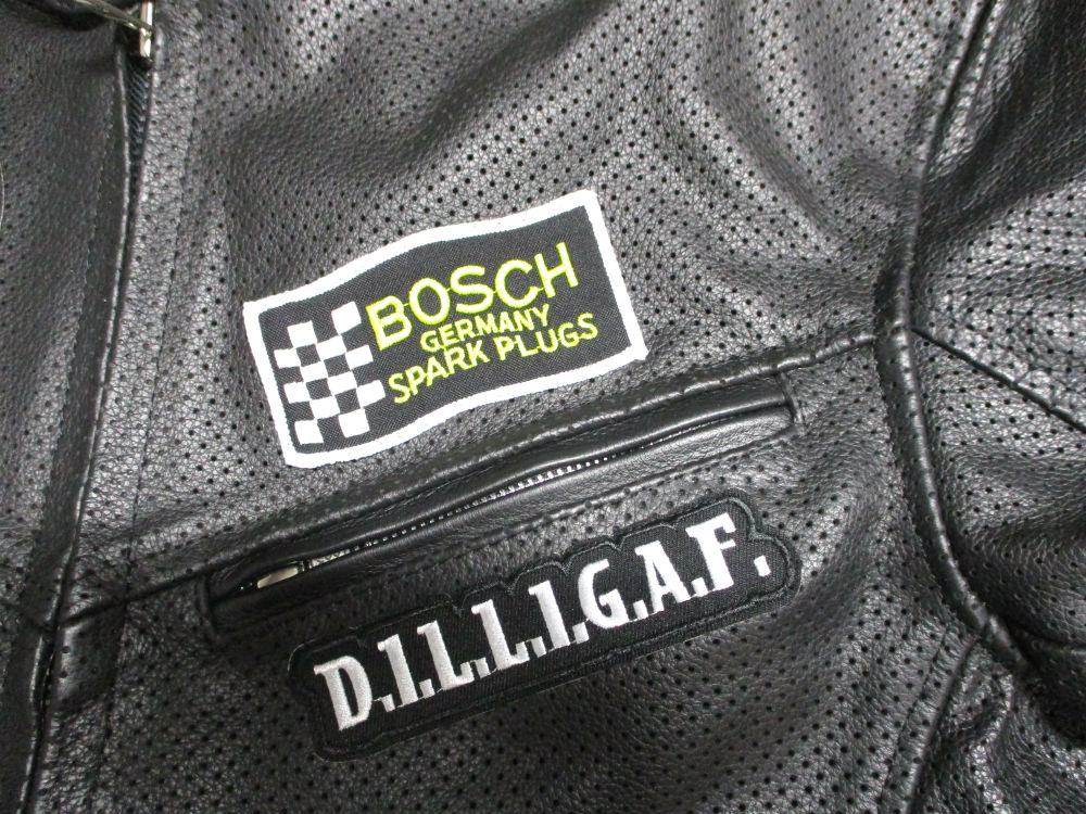 レザージャケットにお客さんの気に入ったワッペンの取り付け