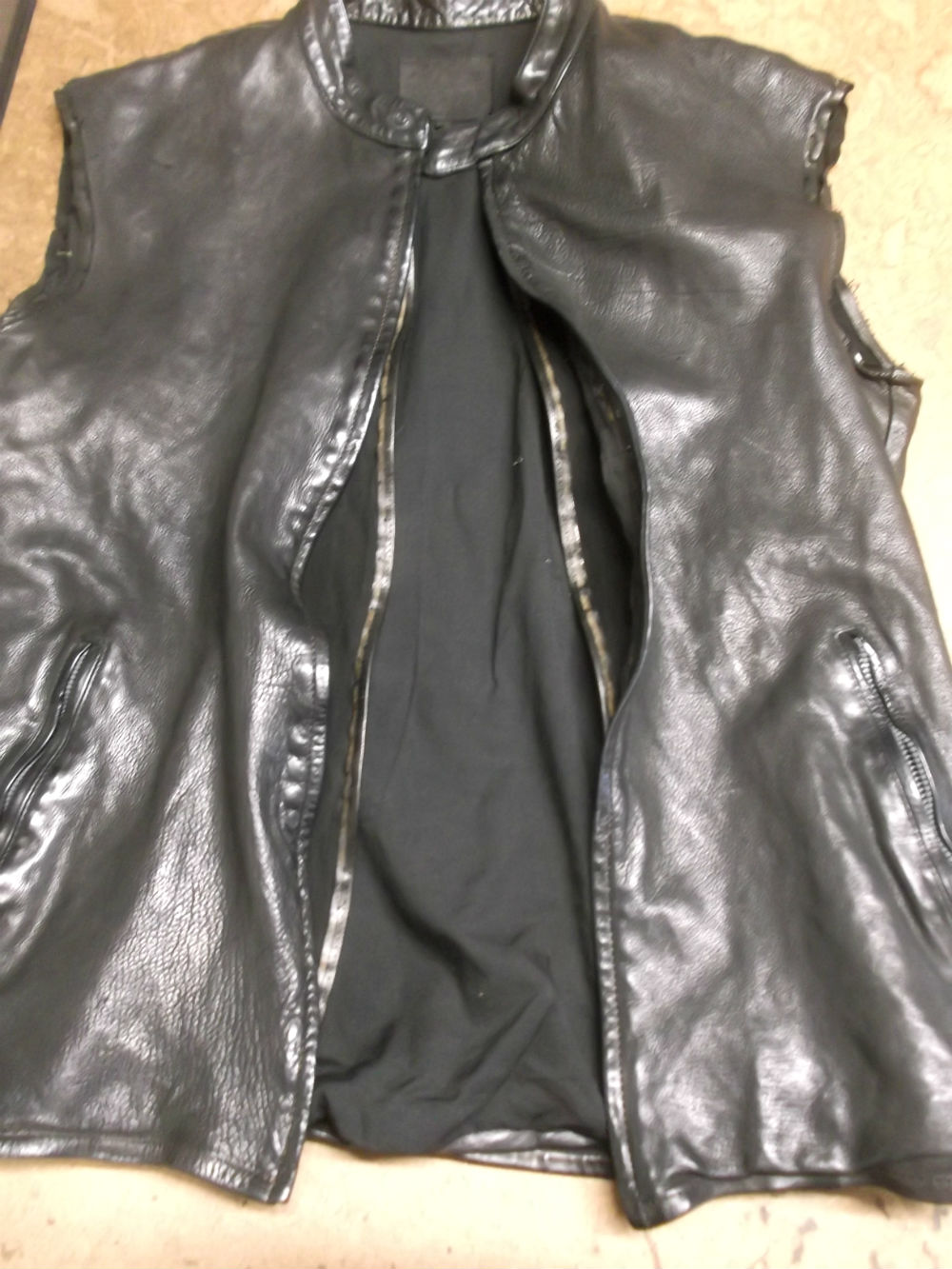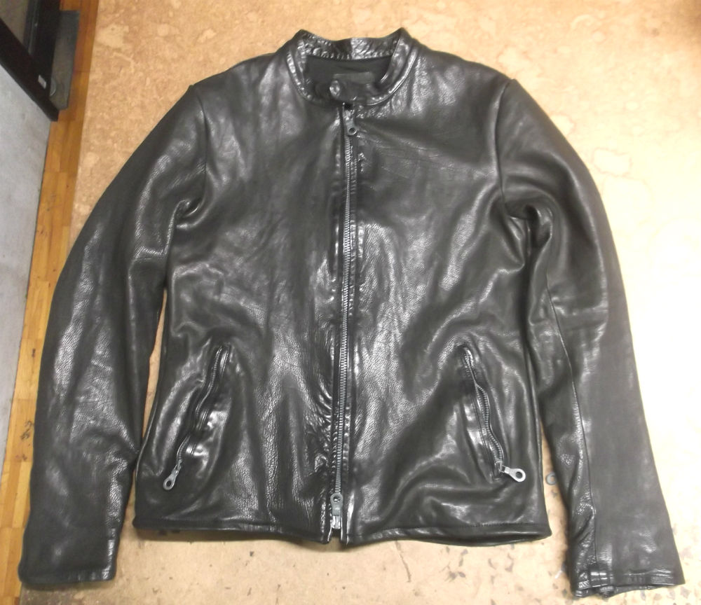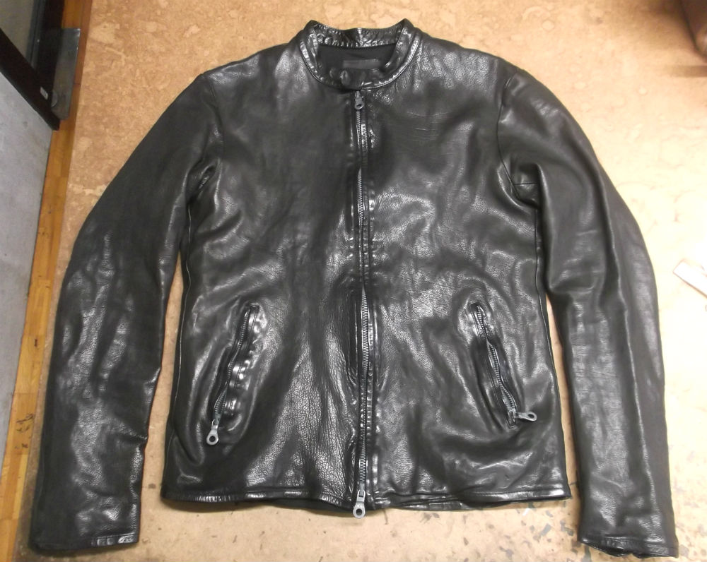 1枚目は福岡県からの郵送のお客さんのサイズダウンをしていく前のレザージャケットです。