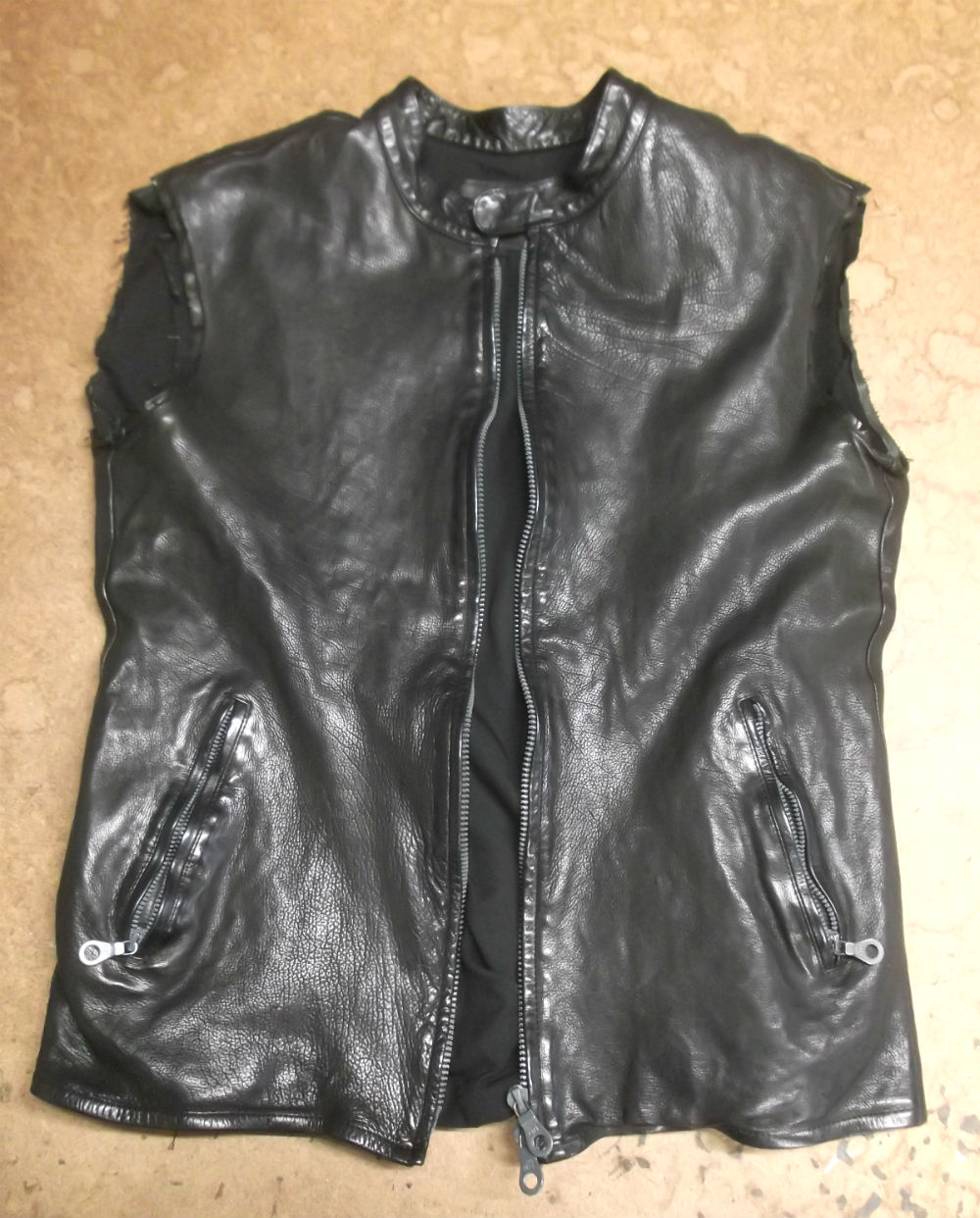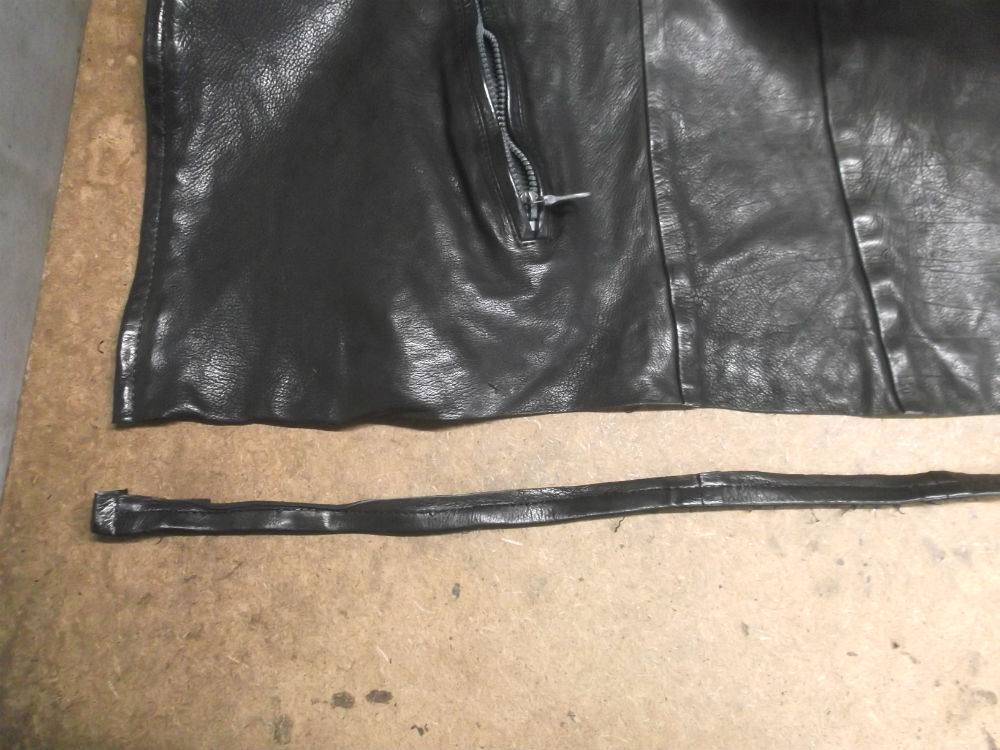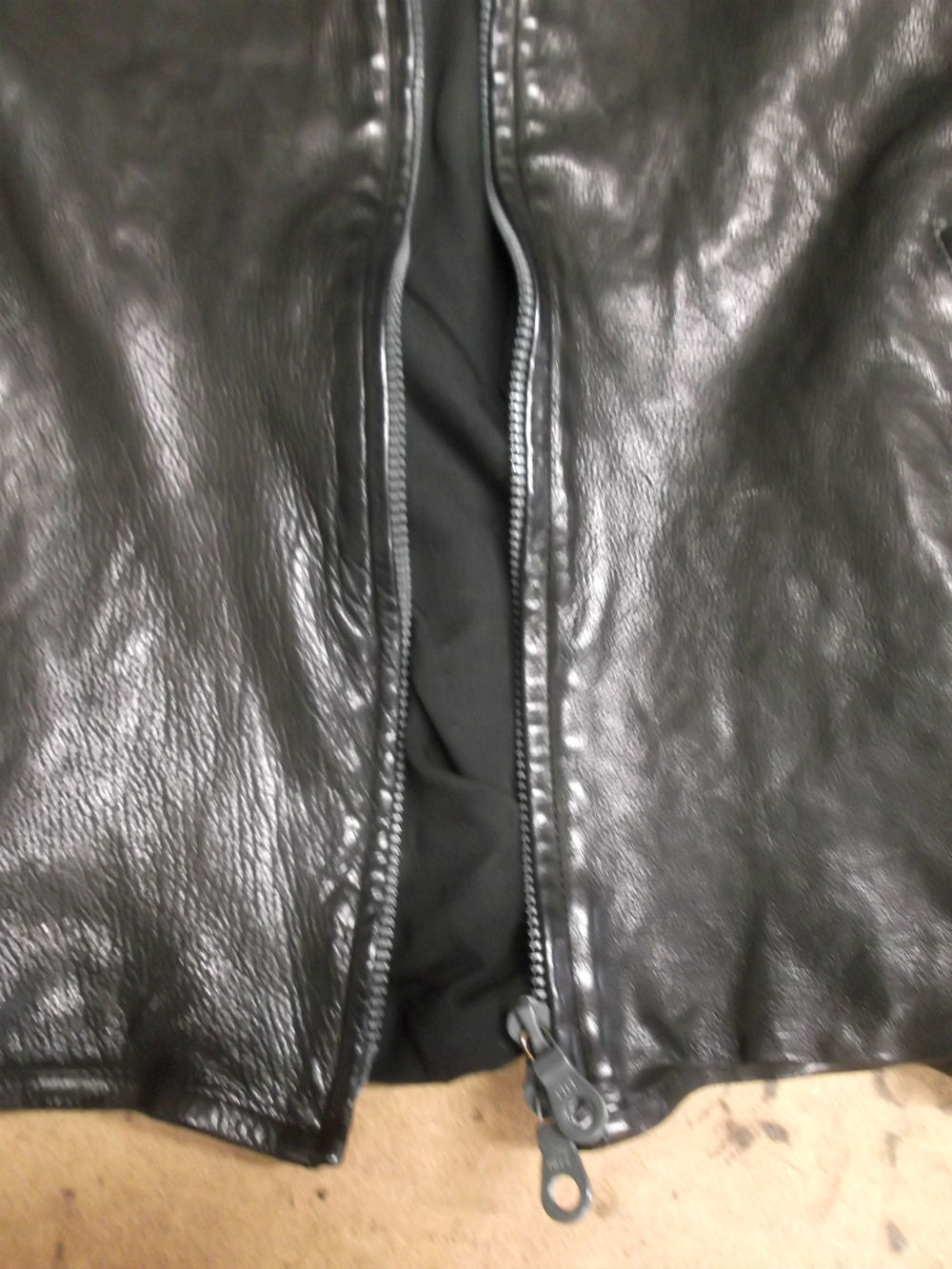 30枚目は31枚目との比較で着丈を短くする前のレザージャケットの裾付近の写真です。