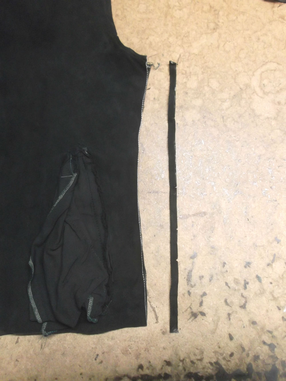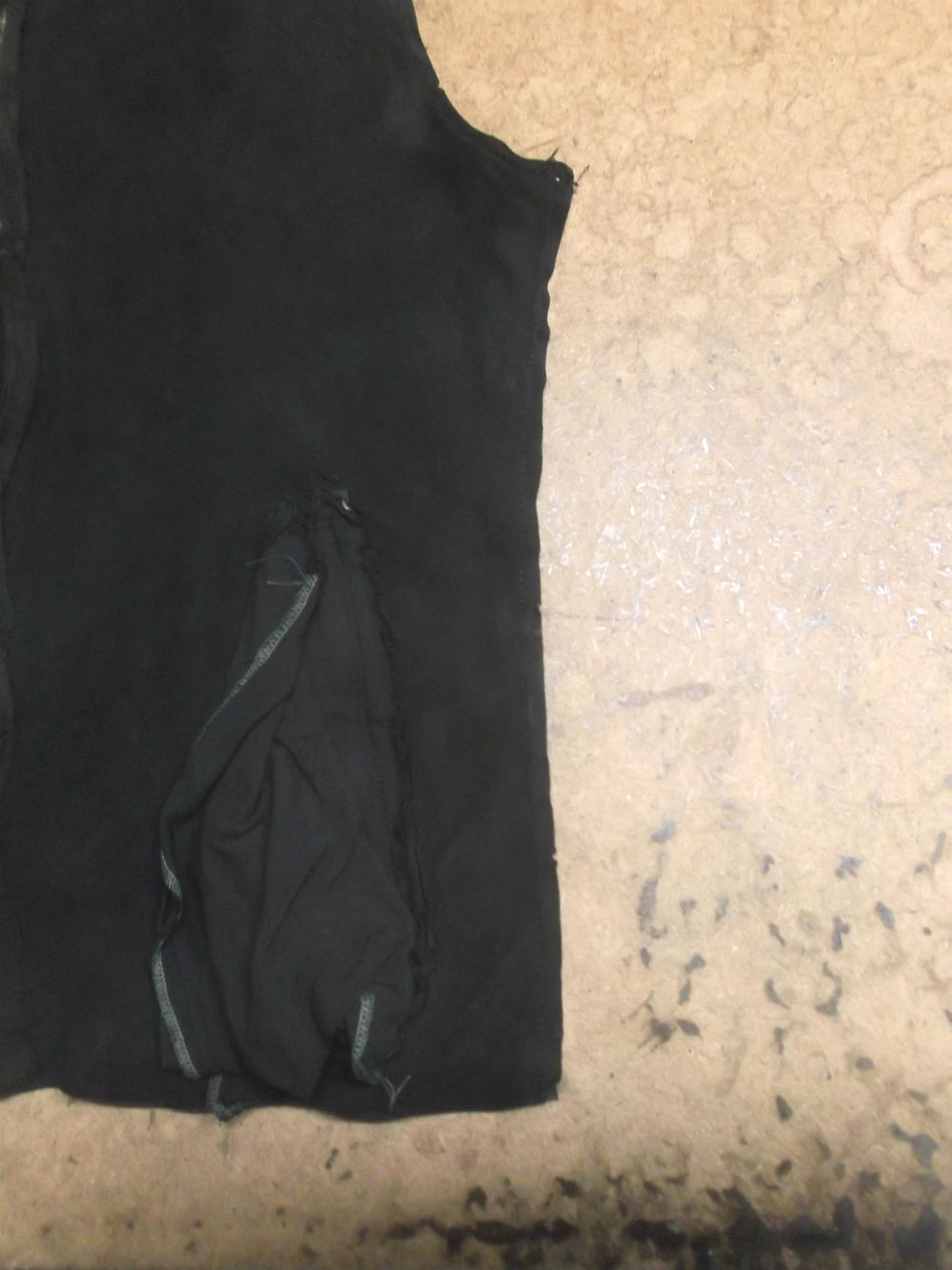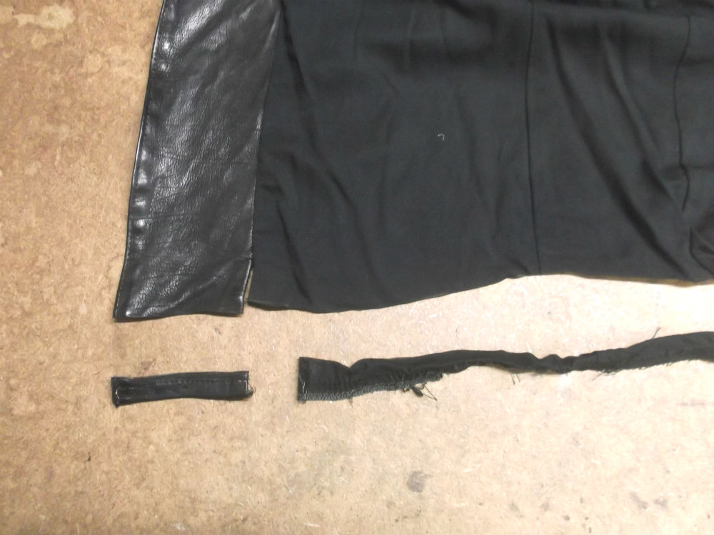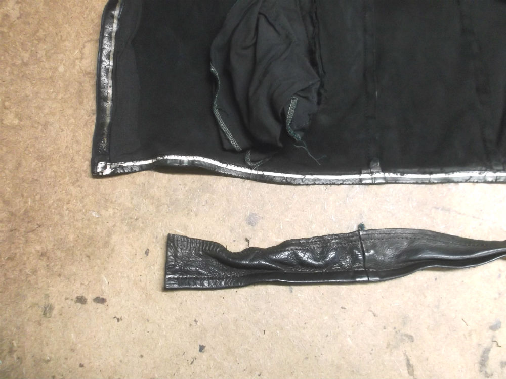 14枚目は表側の脇から裾のレザーをカットした写真です。