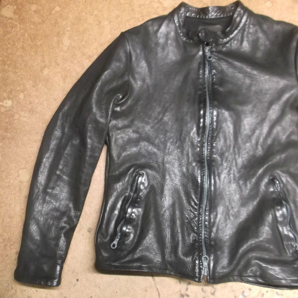 32枚目は33枚目との比較でサイズダウン前のレザージャケットです。