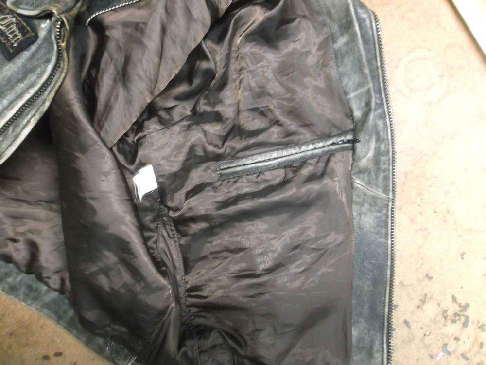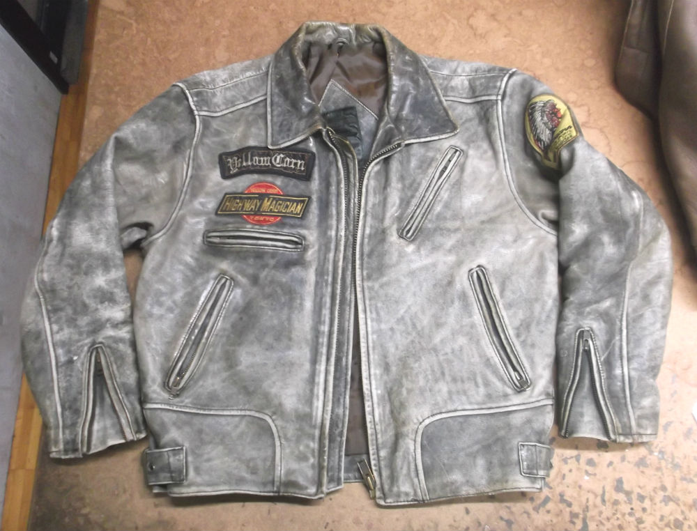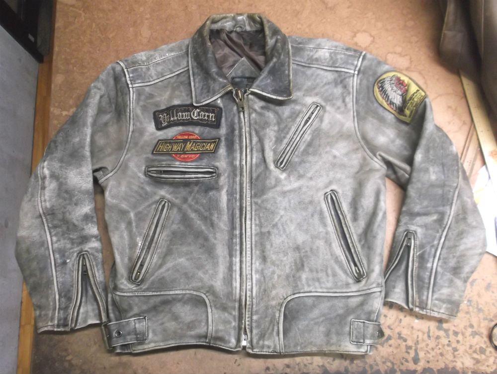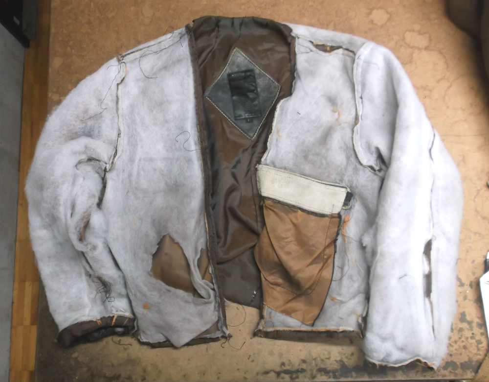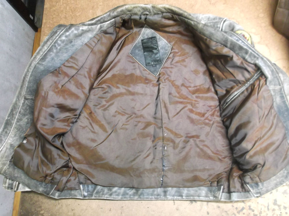 5枚目は裏地を取り外した後の反対側に引っくり返したレザージャケットの写真です。