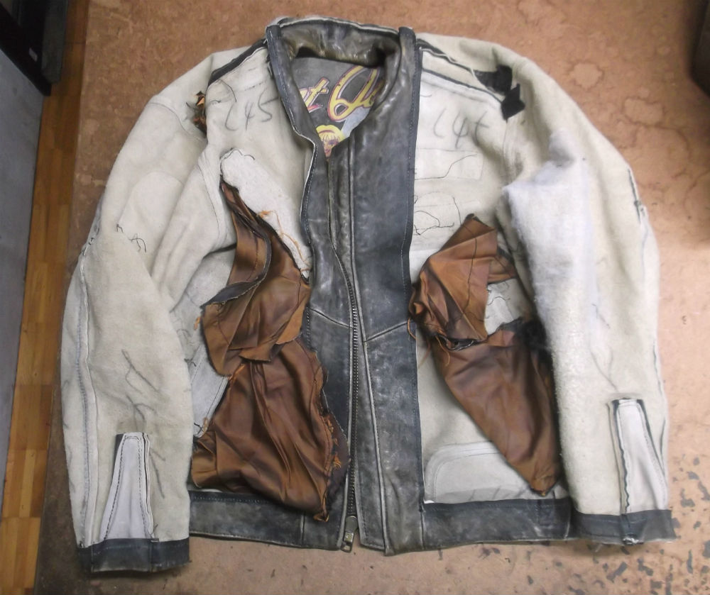 この後、カットを終えたパーツを組み直してレザージャケットに取り付けて完成です。