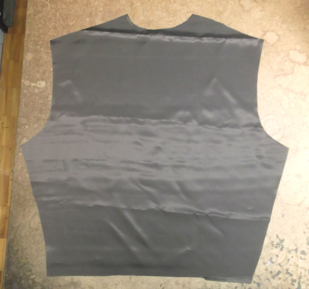 14枚目は新しい裏地の生地で前身ごろを作った後です。