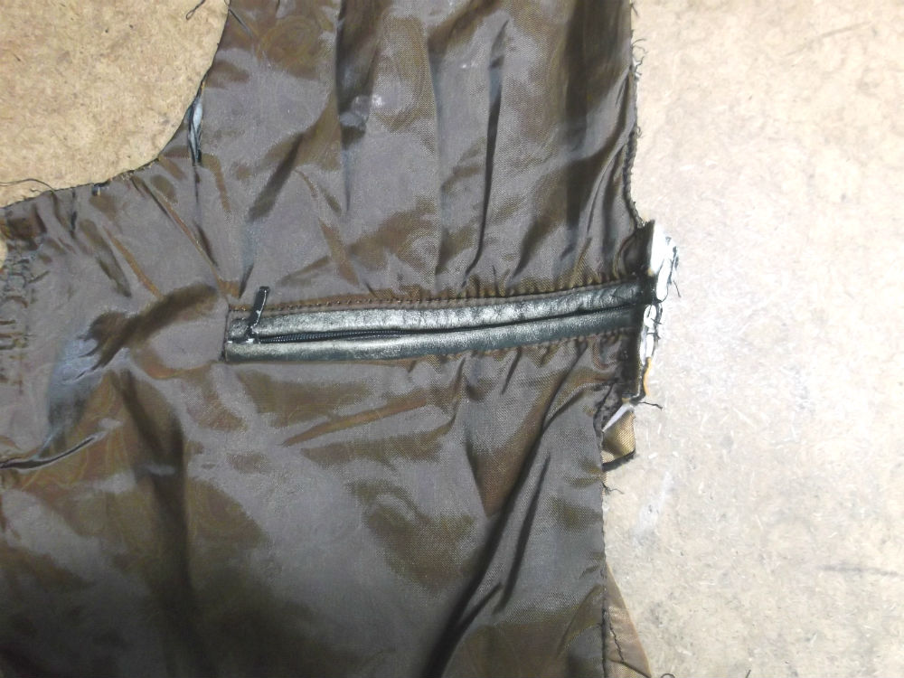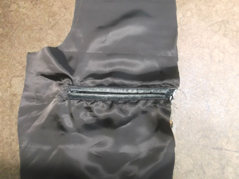 26枚目は内ポケットを新しい生地に取り付けたレザージャケットの裏地の写真です。