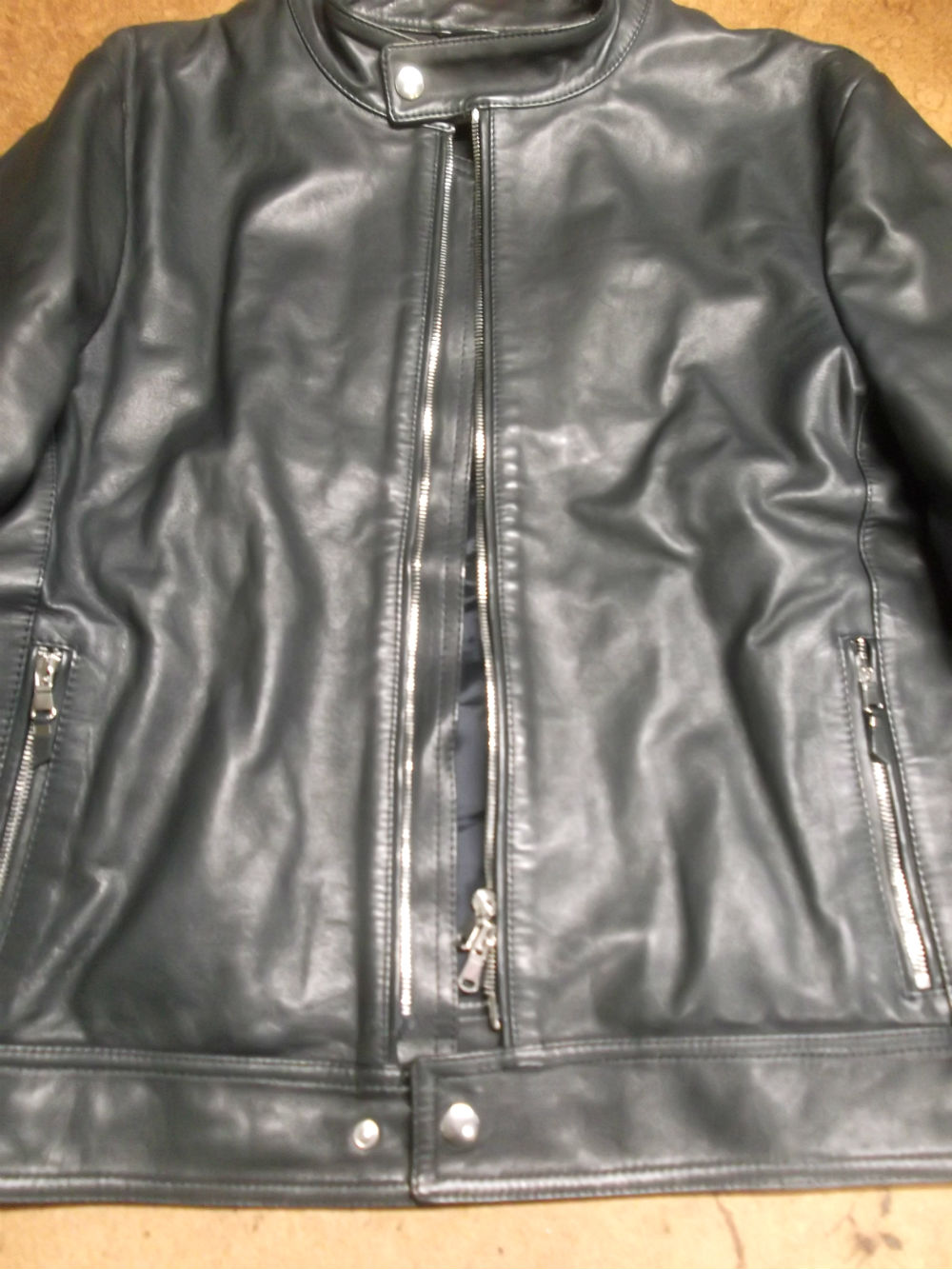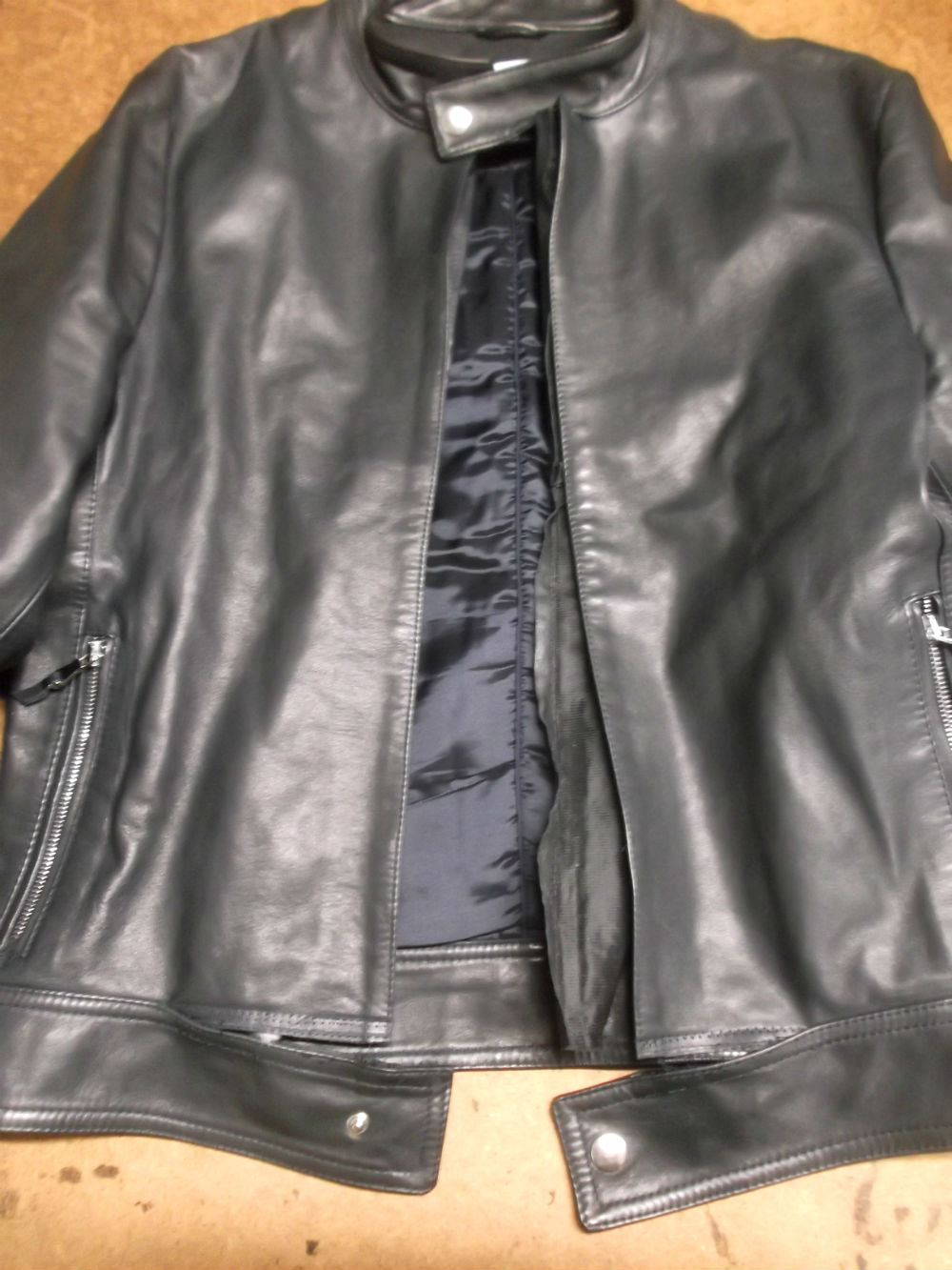 1枚目は島根県からの郵送のお客さんの壊れたダブルジッパーを新しいものに交換していく前のエンメティのレザージャケットです。