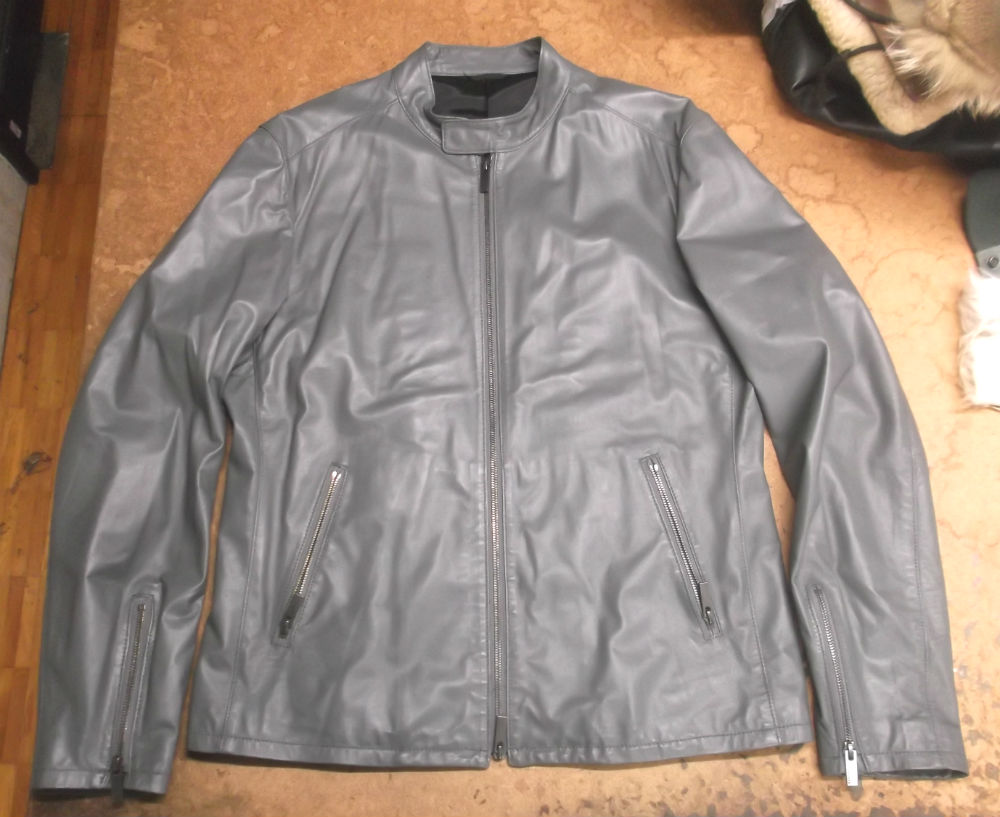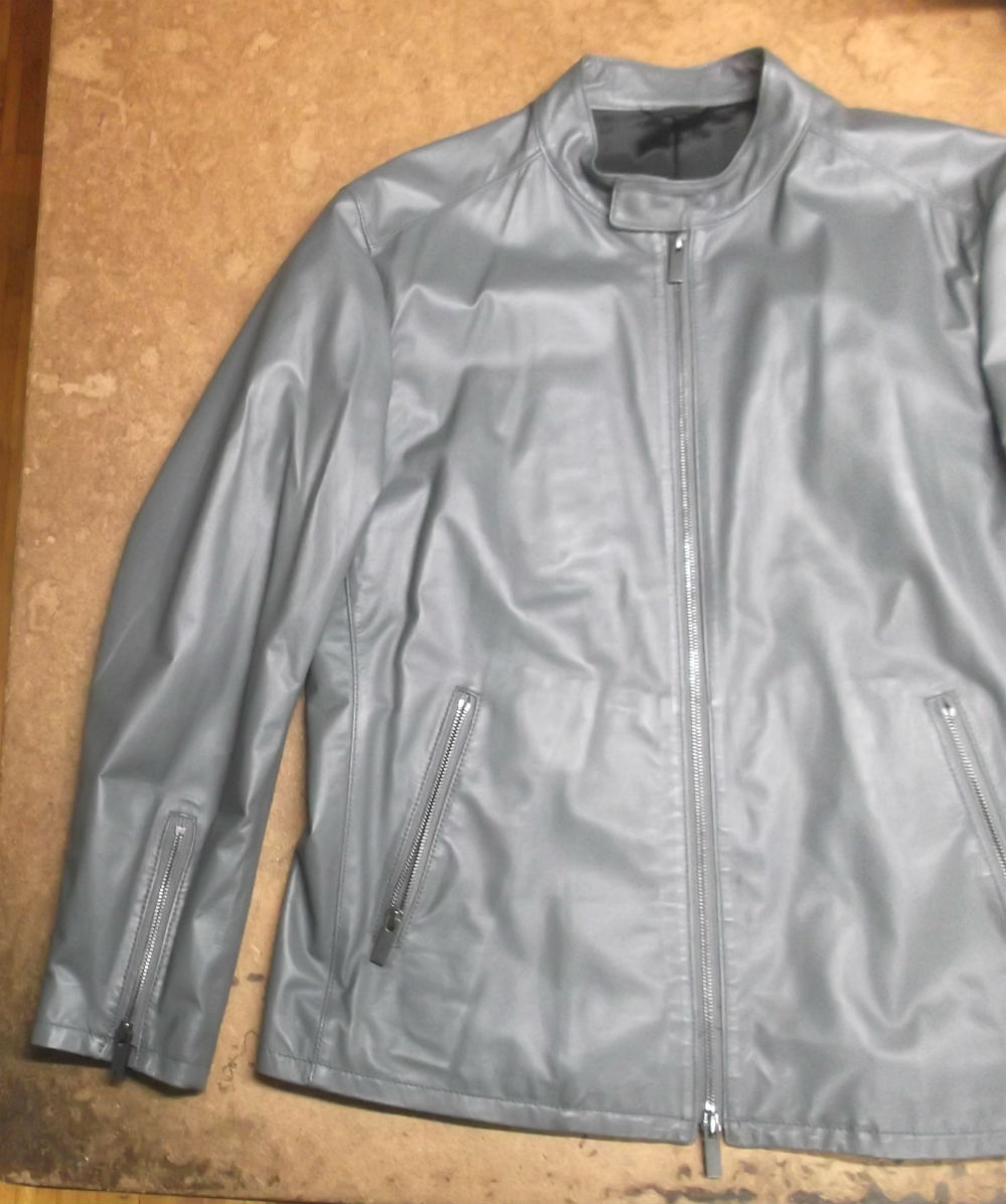 9枚目は10枚目との比較で袖丈を短くする前のレザージャケットです。