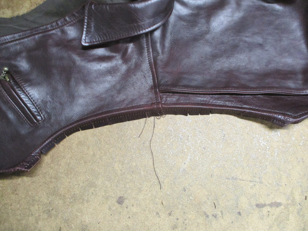 エアロレザーの大きいサイズのジャケットをお客さんの好みのサイズに小さくリサイズしていきます。