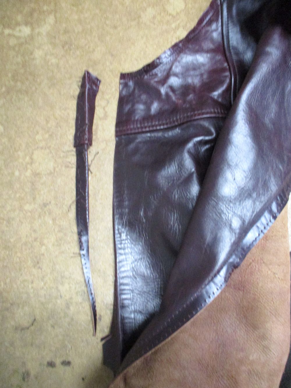 6枚目は脇のパーツのサイドのレザーをカットした写真です。