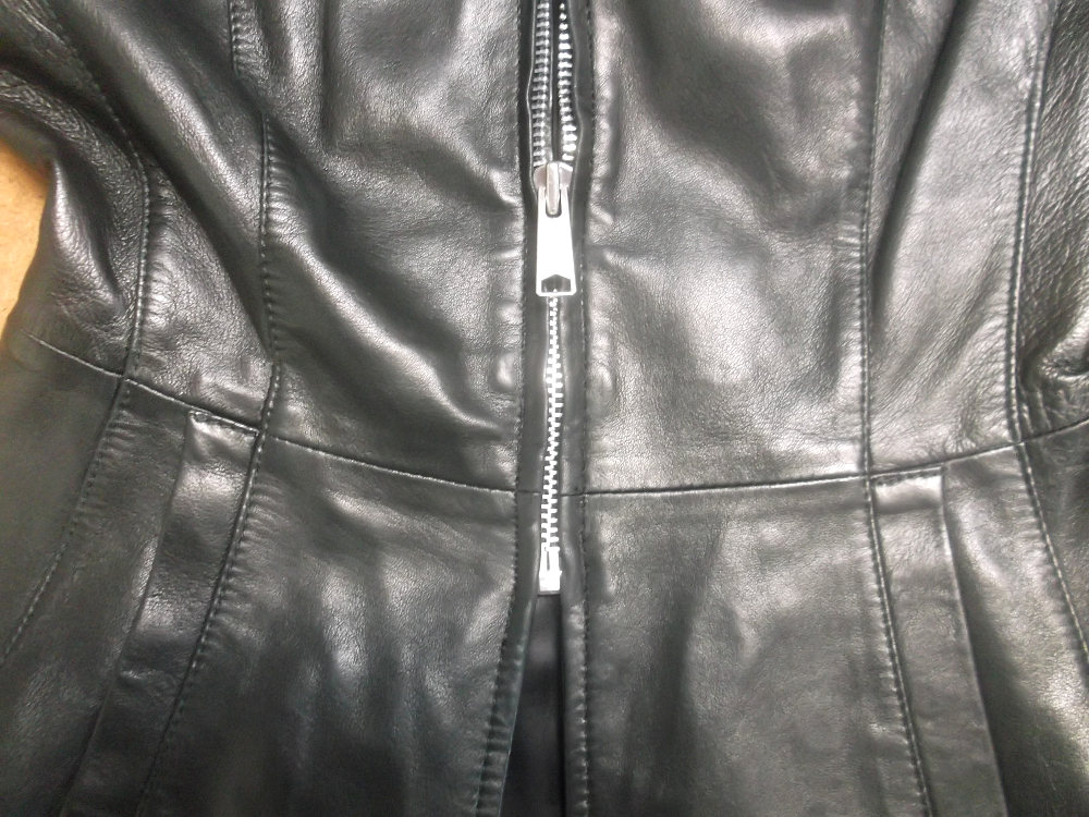 ファスナーの壊れたレザージャケットを新しいものに交換していきます。