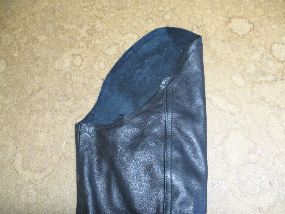 4枚目は袖山のレザー部分をカットして袖丈を短くしていきます。