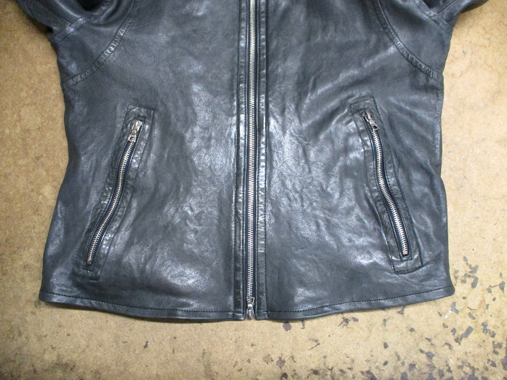 23枚目は24枚目との比較で袖丈と着丈を短くしていく前のレザージャケットです。