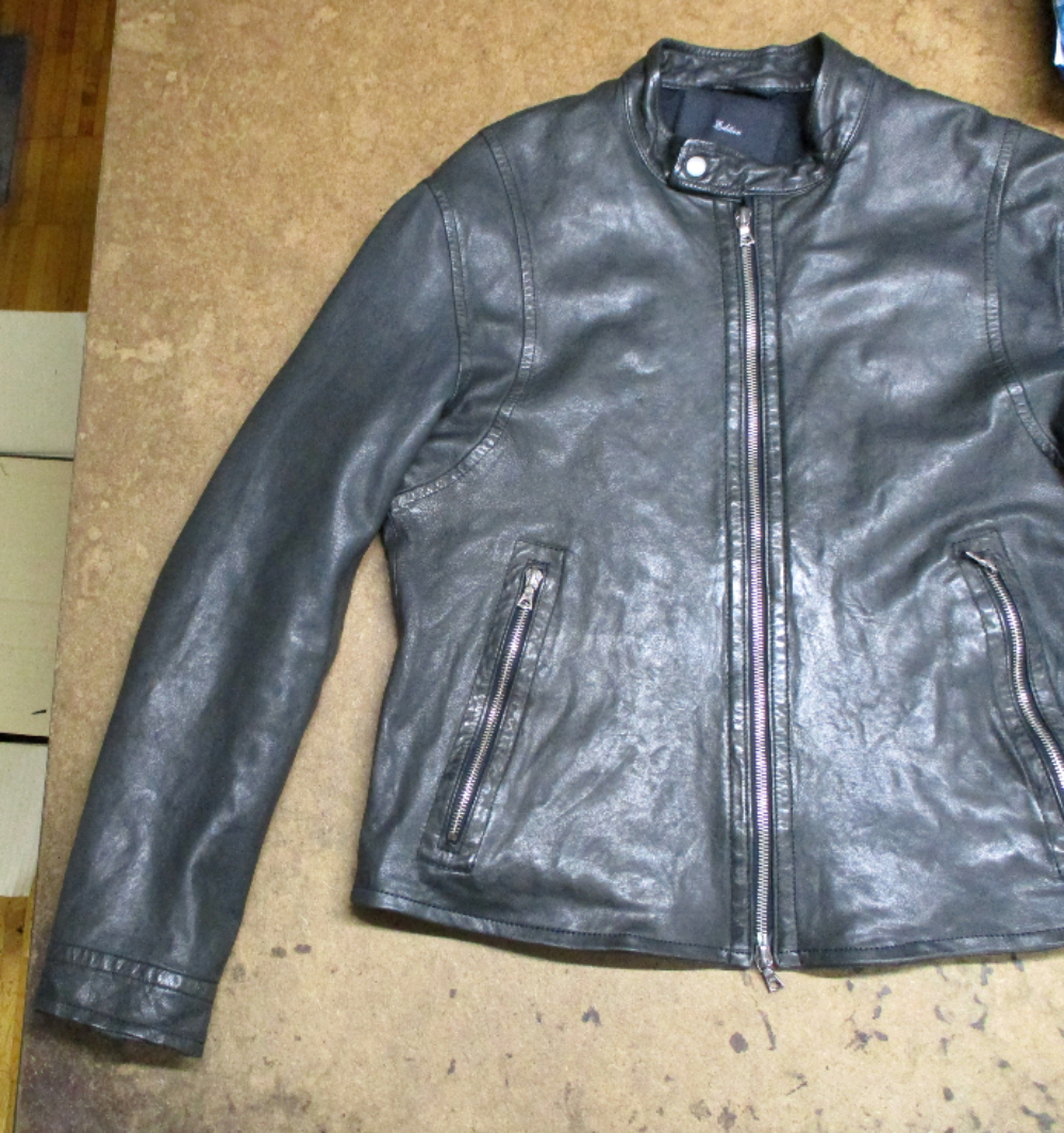 1枚目は来店されたお客さんの袖丈を着丈を短くしていくレザージャケットです。