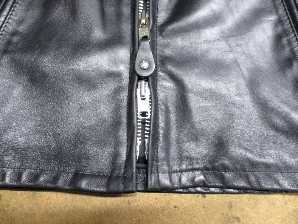 ショットのレザージャケットのジッパーをダブルジッパーに新しく交換していきます。