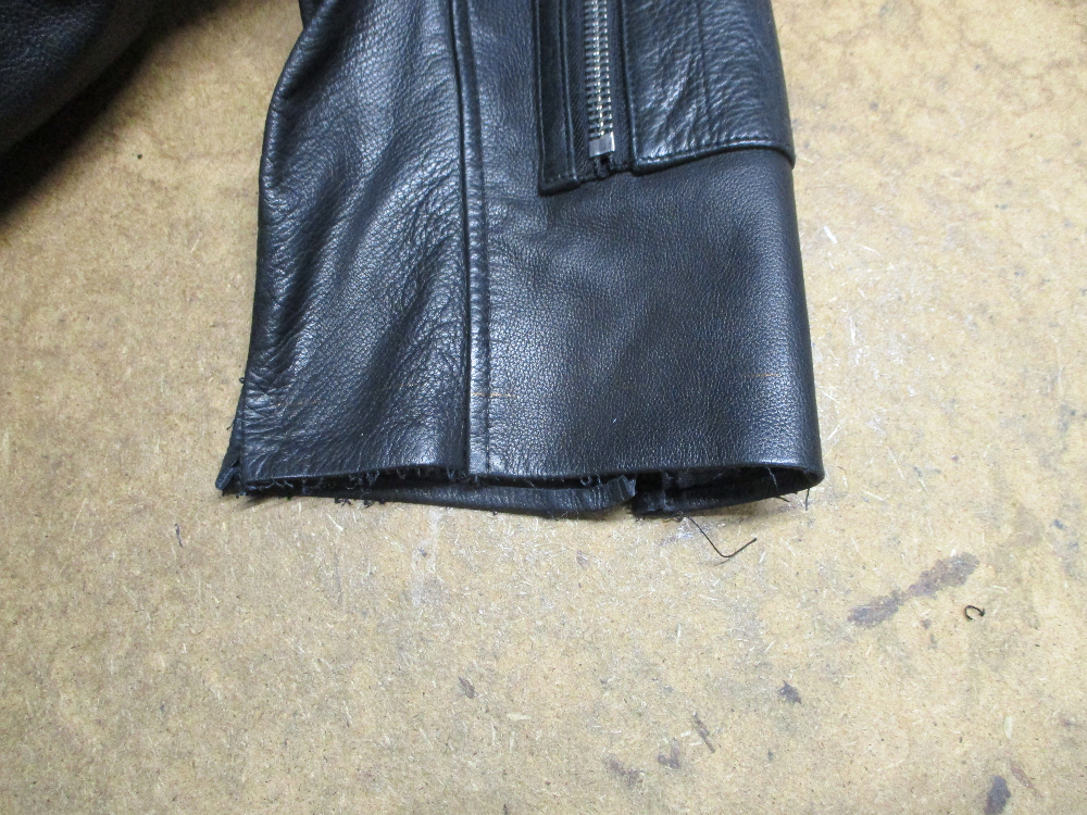 1枚目は愛知県からの郵送のお客さんの長い袖丈を短くしていく前のレザージャケットです。