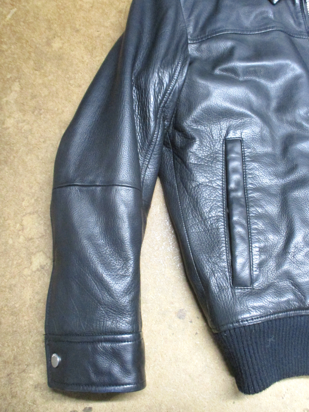 12枚目は13枚目との比較で袖丈を短くする前のレザージャケットです。